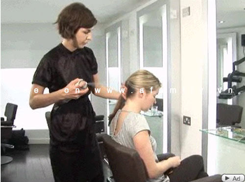 3. Thoa chút keo xịt tóc lên tóc của bạn để giúp giữ nếp tóc và cho mái tóc thêm bóng đẹp hơn.