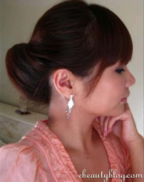 Kiểu tóc búi lận gọn gàng, sang trọng này sẽ luôn giúp bạn nổi bật cho một ngày công sở hoặc trong những bữa tiệc nhẹ nhàng.