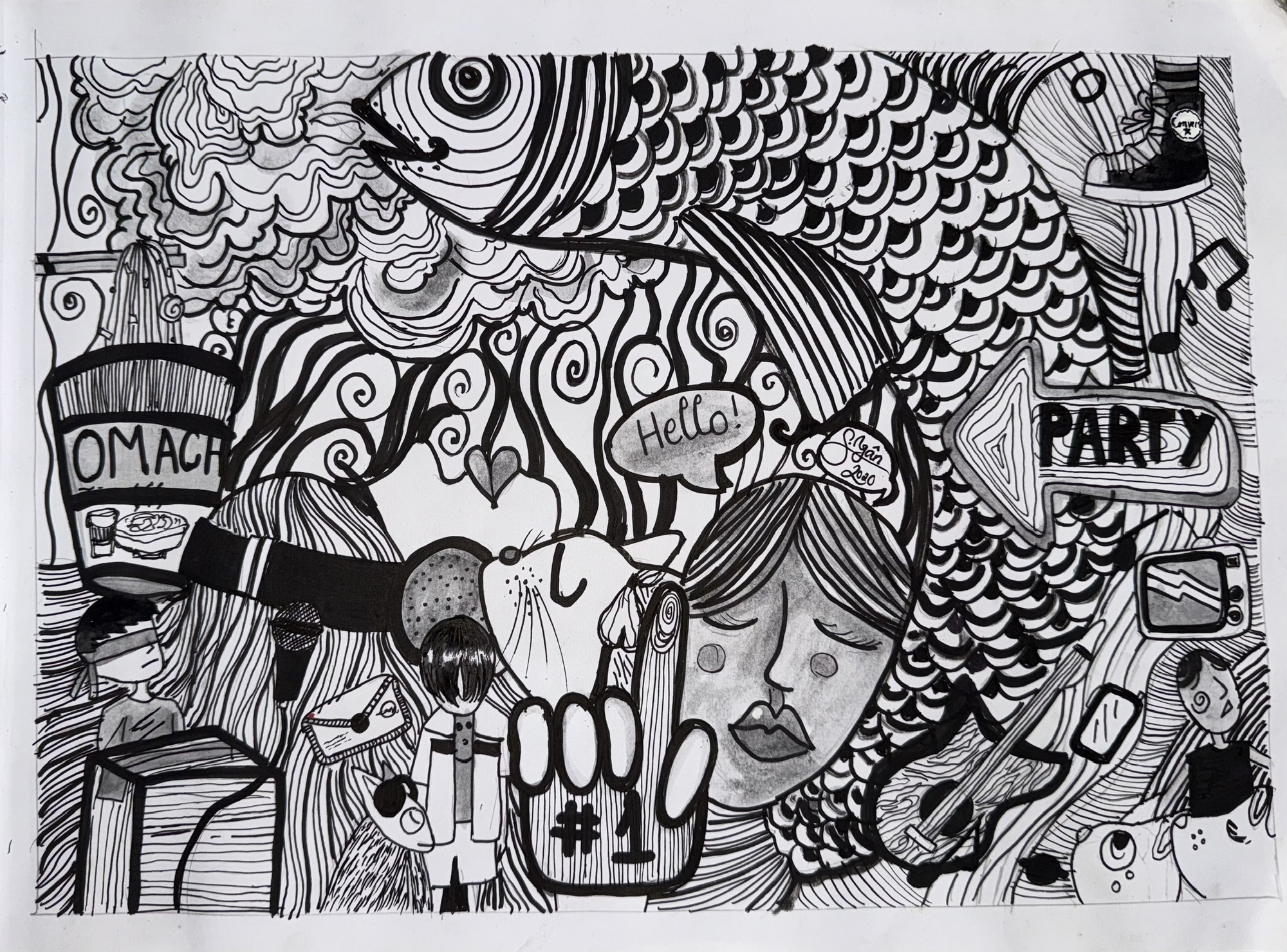 Trong video, Ngân lồng ghép nhiều tác phẩm đã vẽ suốt 5 năm: có giấy, có acrylic, có marker, poster color; có đồ vật sáng tạo như giày, áo, đá cuội; có những phong cách rất khác nhau. Vẻ đẹp không nằm ở kỹ thuật cầu kỳ, mà ở việc những bức vẽ phản ánh cách Ngân quan sát cuộc sống: nhẹ nhàng, tinh tế, đầy tình cảm. Em gọi đó là cách mình “làm cho cuộc sống trở nên thi vị hơn” bằng nghệ thuật.