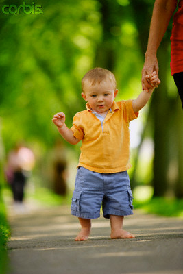 Sau khi trẻ có thể đi khi có vật vịn, bạn ngồi trước mặt trẻ, dang hai tay cổ vũ trẻ đi về phía bạn, đầu tiên là một hai bước, rồi tăng dần khoảng cách. Khi trẻ không sợ bỏ hai tay đi nữa, hai bạn có thể đứng hai đầu, cho trẻ đứng ở giữa đi qua đi lại.
