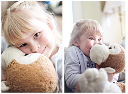 Các “đạo cụ” như búp bê, gấu bông cho bé gái hay ô tô, tàu hỏa đồ chơi cho bé trai sẽ giúp trẻ thoái mái hơn trước ống kính, cũng như làm tăng thêm sự sinh động cho bức ảnh. Nếu chụp tại nhà của trẻ, nên cho trẻ chơi những món đồ chơi ưa thích của chúng. |