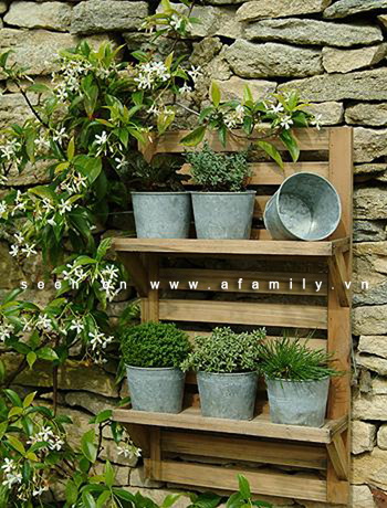 Nếu không gian mặt đất chẳng đủ để bạn thực hiện ước mơ chăm sóc những chậu cây thì tại sao không thử mang nó đến không gian cao hơn nhỉ? Hãy sử dụng kệ treo tường như là một vị “cứu tinh” trong trường hợp này. Ngưỡng cửa sổ hay các bức tường bên ngoài sẽ là nơi lý tưởng cho bạn tận dụng trồng những chậu hoa mình yêu thích đấy!