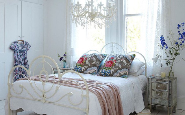 14. Một chiếc đèn chùm dịu dàng có cùng tông màu với ga trải giường cũng là cách mang đến vẻ đẹp lãng mạn và ngọt ngào cho không gian nghỉ ngơi.