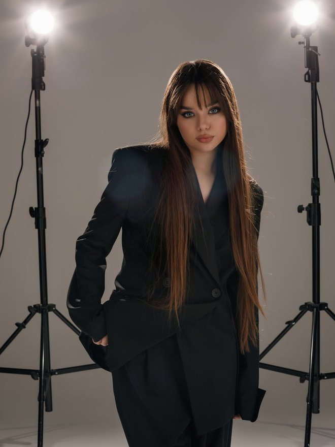 Ở tuổi 15, cô bé năm nào giờ đã trở thành một thiếu nữ với đường nét sắc sảo hơn. Gương mặt vẫn giữ được nét tròn trịa đặc trưng, nhưng các chi tiết đã rõ nét và trưởng thành hơn. Đôi mắt xanh từng được ví như “vũ trụ” vẫn là điểm nhấn, dù không còn vẻ trong veo trẻ thơ mà thay vào đó là chiều sâu và thần thái.