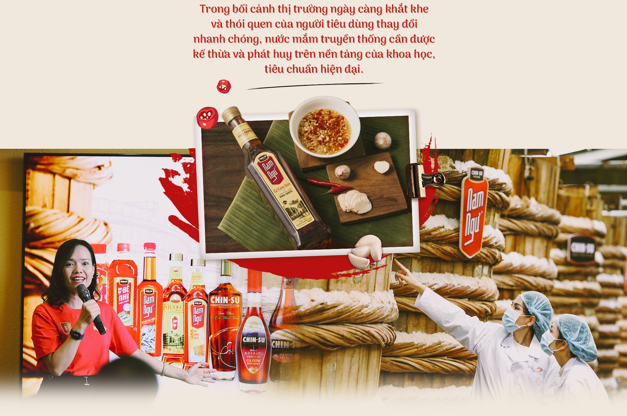 Bà Lê Thị Nga - Phó Tổng Giám đốc R&D Masan Consumer bộc bạch: "Để tạo ra những dòng nước mắm chất lượng sẽ không chỉ đơn thuần dựa trên phương pháp truyền thống mà còn cần phải kết hợp với khoa học kỹ thuật để trở nên chuẩn hóa, giúp mình kiểm soát được chất lượng, có thể nắm được các khâu từ khi đưa lô cá đầu vào đến thành phẩm nước mắm đầu ra như thế nào sau 12 tháng".