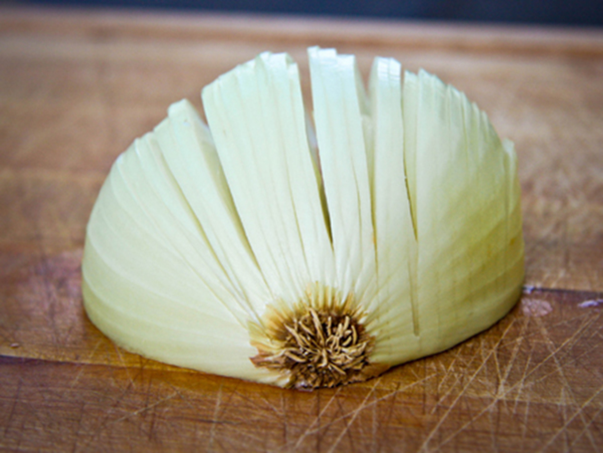 Thông thường phần gốc (rễ) của củ hành tây là nơi tập trung nồng độ hợp chất lưu huỳnh cao nhất. Vì vậy, mẹo kinh điển của các đầu bếp là cắt phần chóp trước, lột vỏ, thái hạt lựu và để lại phần gốc cắt sau cùng (hoặc vứt bỏ nguyên gốc).