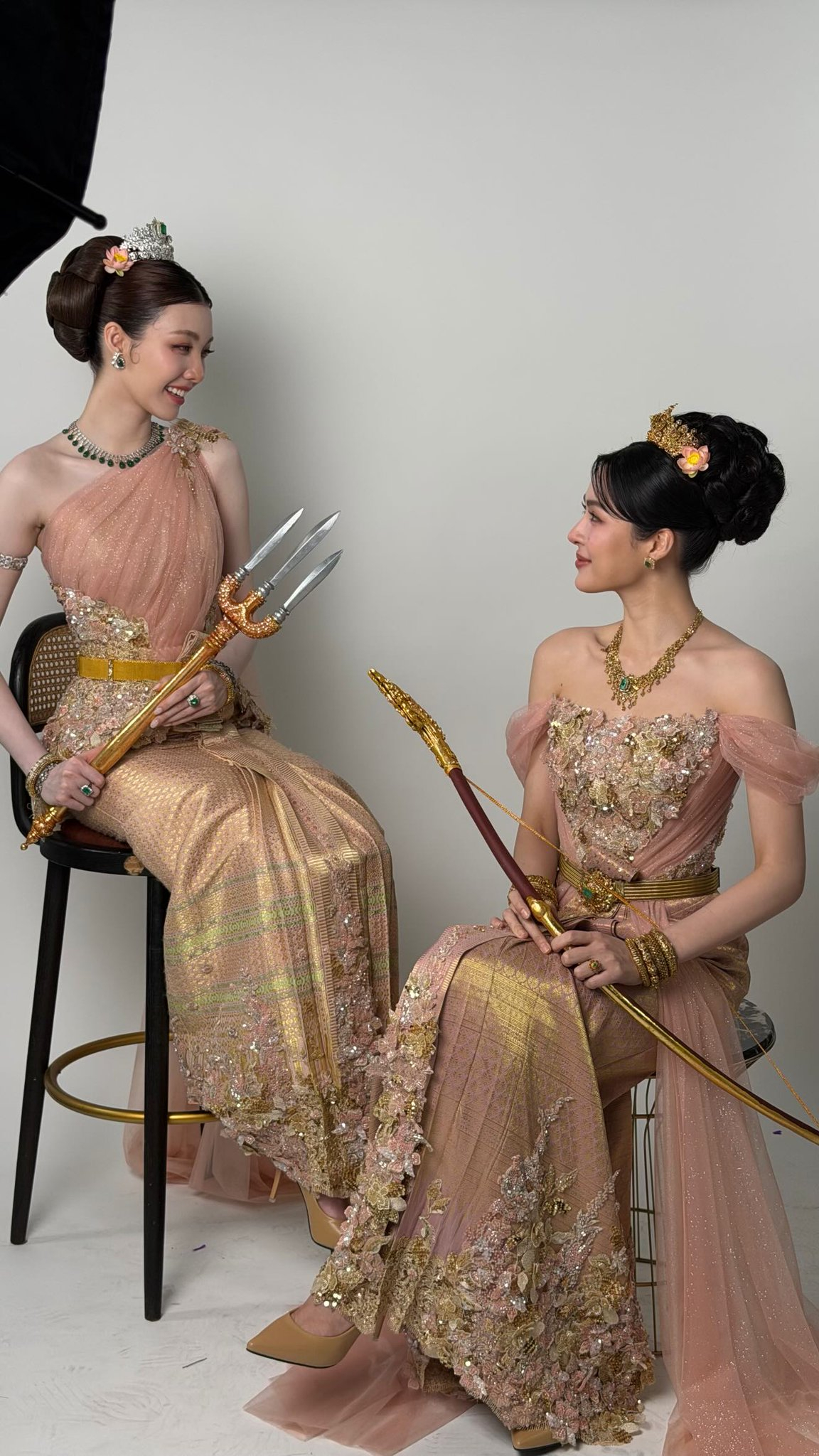 Bộ đôi diễn viên diện trang phục truyền thống tinh xảo, đúng chuẩn nữ thần. Ảnh: X