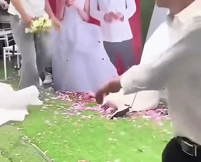 Sự việc khiến cô gái ngã sõng soài ra đất, 1 trong 2 nam thanh niên bắt được hoa rồi chạy xuống. Cả 2 đều không ai đến đỡ cô gái dậy. Cuối cùng, cô gái được chú rể hỗ trợ đứng dậy. Dù bị ngã, nhưng cô gái vẫn vui vẻ, tươi cười. Tuy nhiên, đoạn clip đã nảy ra nhiều luồng ý kiến tranh cãi về hành động của 2 nam thanh niên.