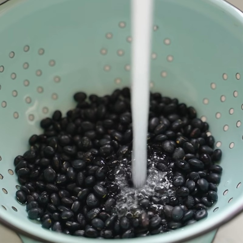 Ngâm đậu đen trong nước khoảng 4 giờ. Nếu không có nhiều thời gian bạn có thể dùng nước ấm và ngâm trong 2 giờ. Sau đó bạn rửa sạch đậu đen đã ngâm và cho vào máy làm sữa hạt cùng với mè đen và gạo nếp đã vo sạch. Thêm một lượng nước thích hợp, điều chỉnh lượng nước theo độ đặc bạn muốn. Sau đó chọn chế độ làm sữa đậu nành rồi ấn nút khởi động. Sau khi máy hoàn thành, bạn đổ hỗn hợp ra cốc và dùng. Thưởng thức một cốc sữa hạt đậu đen và mè đen vào buổi sáng hoặc buổi tối để vừa làm ấm bụng vừa bổ dưỡng.