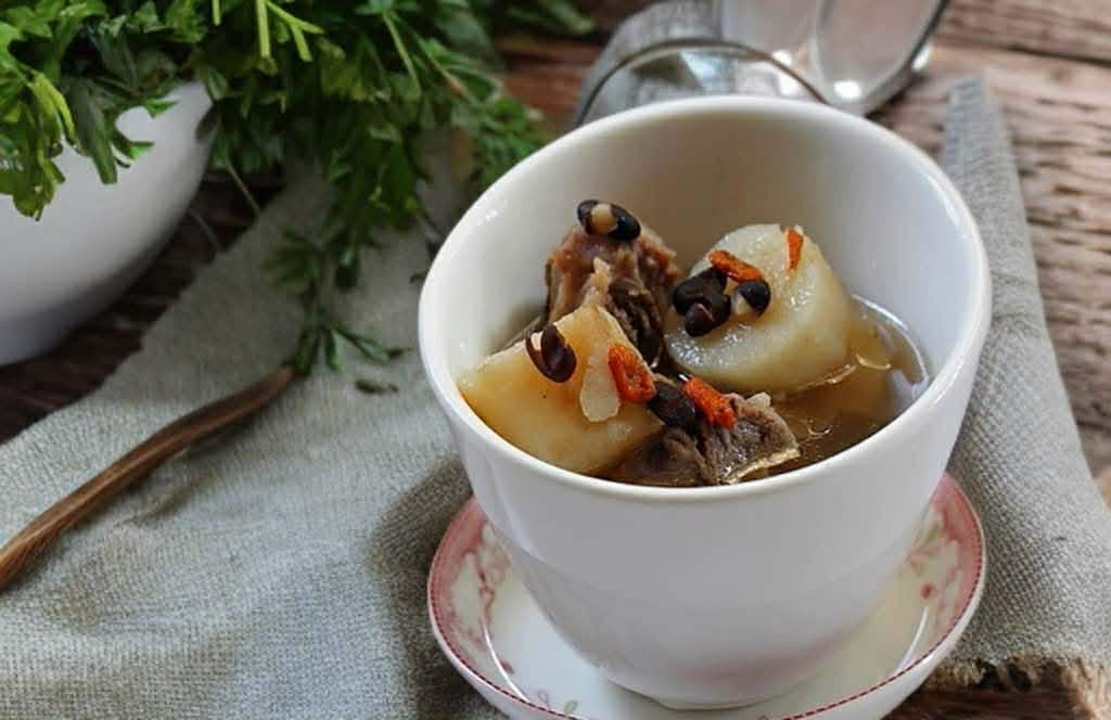 Cách thứ 2 là bạn hãy làm món canh sườn heo đậu đen, củ mài và kỷ tử.