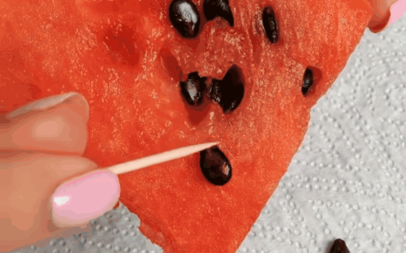Lấy những hạt dưa hấu từ trái dưa bạn mua ngoài cửa hàng cho vào một hộp thủy tinh, sau đó phủ giấy ăn lên và xịt nước ẩm lên trên. Bọc màng bọc thực phẩm lên hộp thủy tinh này sau 5 phút, bạn dùng que xiên nhọn chọc lỗ để không khí xâm nhập vào cho hạt hít thở.