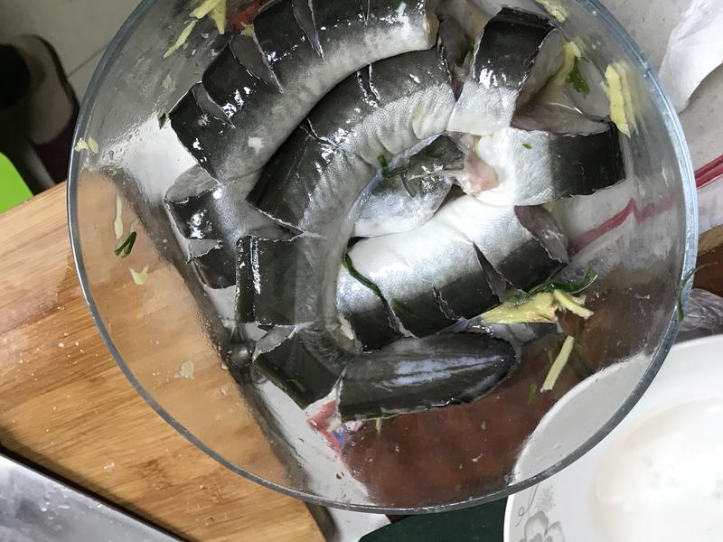 Nguyên liệu: 1 con lươn biển (hoặc lươn sông to), 20g rượu nấu ăn, 2-3 cây hành lá, 20g gừng, 8g muối, 5g dầu ăn, một chút xíu muối.