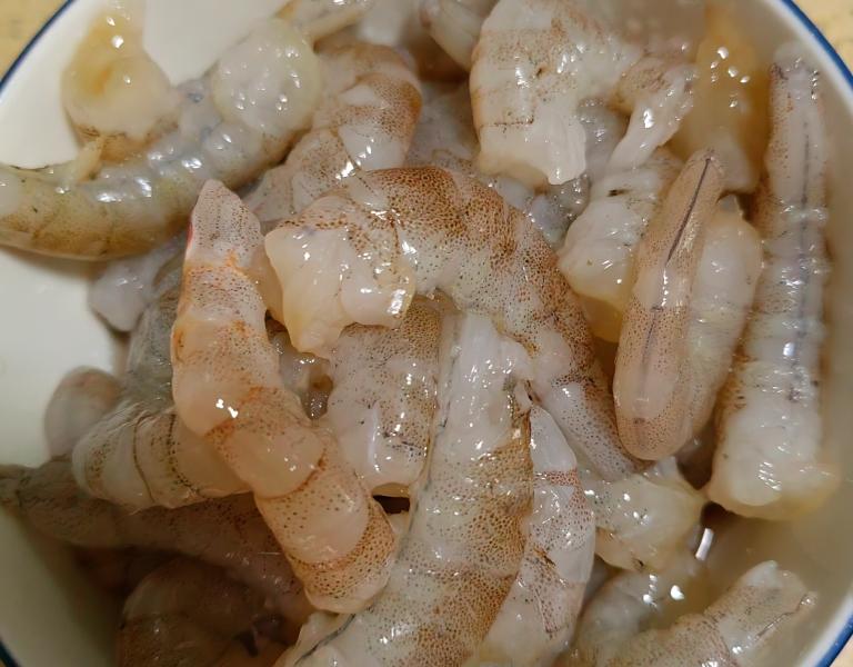 Bước 1: Làm sạch tôm tươi, bóc vỏ và lấy thịt tôm. Cho tôm vào bát sau đó thêm 1 thìa canh rượu nấu ăn, trộn đều và ướp trong 15 phút để khử mùi tanh. Cắt bông cải xanh thành từng nhánh nhỏ, rửa sạch và chần qua nước sôi. Sau đó vớt ra để ráo.
