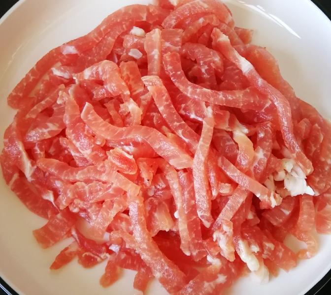 Bước 1: Rửa sạch gừng non rồi rồi thái sợi mỏng. Thịt thăn heo đem rửa sạch, thấm khô nước rồi thái thành dải dài. Cho thịt heo đã thái vào bát, thêm rượu nấu ăn, một chút nước tương trộn đều. Sau đó cho lòng trắng trứng và bột bắp vào, trộn đều lần nữa và ướp trong tủ lạnh khoảng 15 phút. Sử dụng phương pháp ướp thịt này sẽ giúp thịt mềm và ngon tuyệt vời.