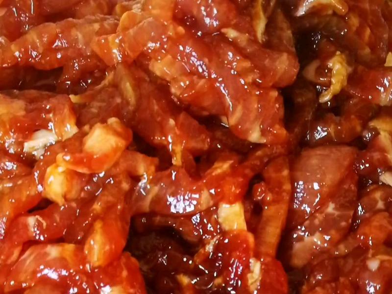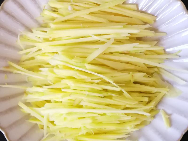 Nguyên liệu: 150g gừng non, 300g thịt thăn heo, hành lá thái nhỏ, muối, nước tương, ớt (tùy khẩu vị) và bột ngọt, 1 thìa canh rượu nấu ăn, 1 lòng trắng trứng gà, 1 thìa canh tinh bột bắp.