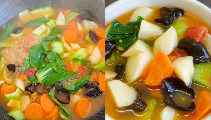 Cách làm món canh cà chua, củ mài và rau củ