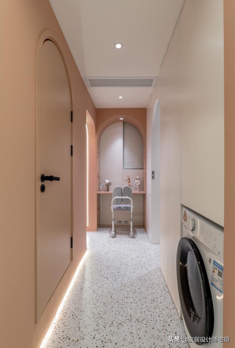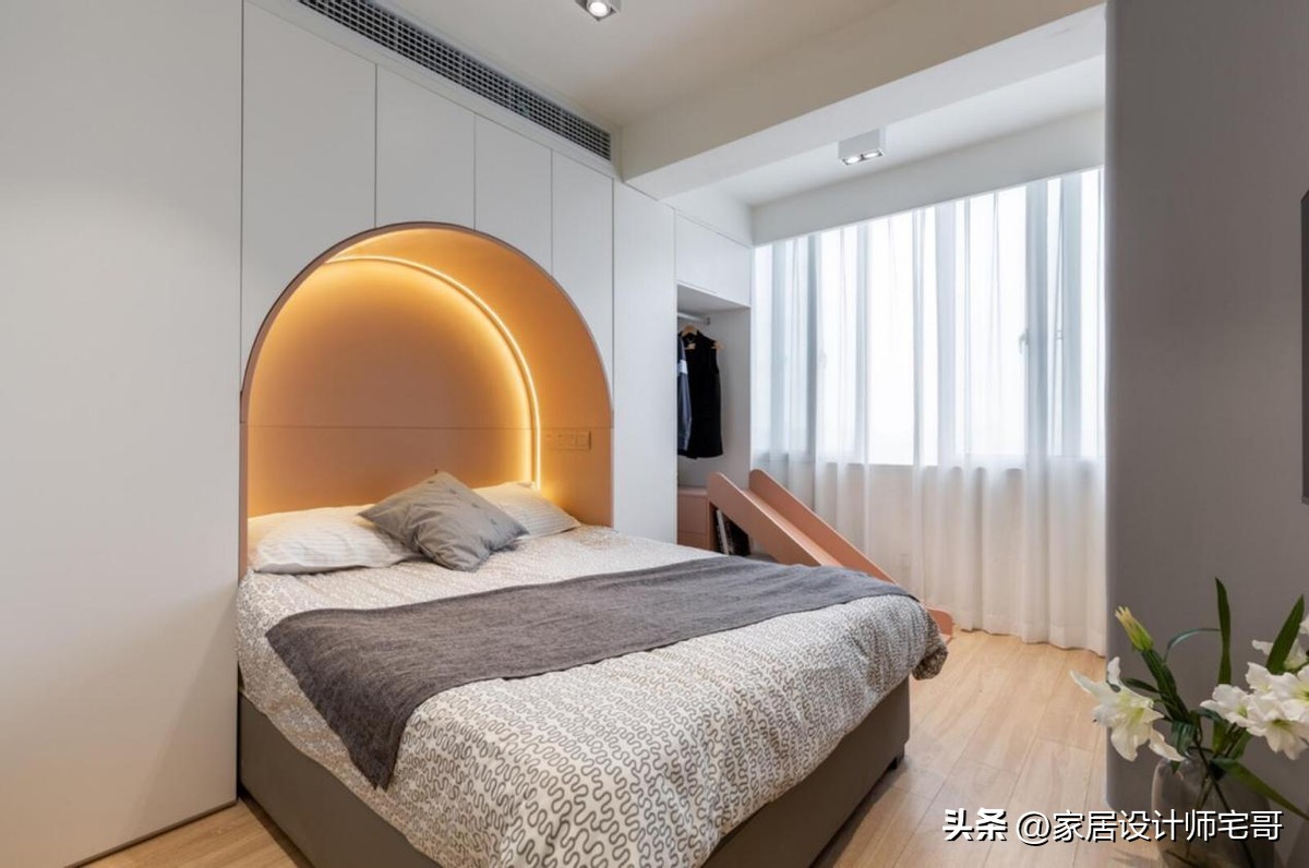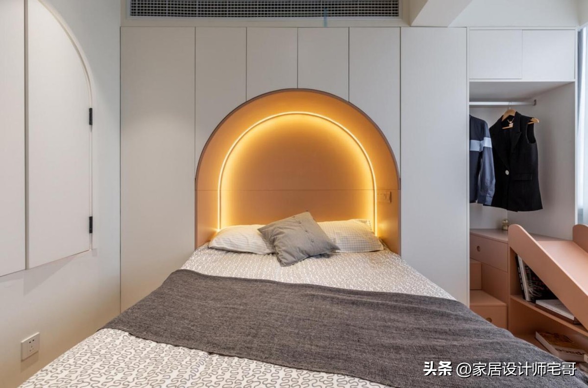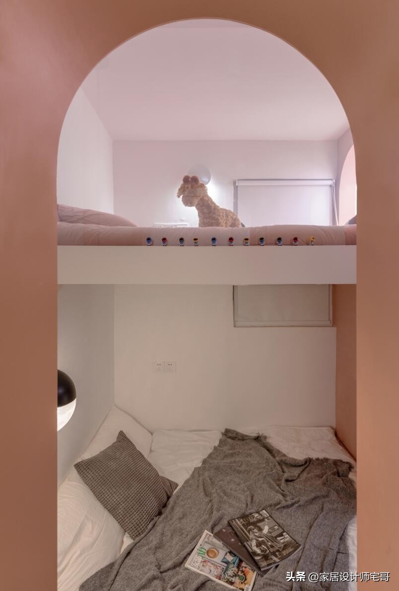 Một trong những điểm đáng chú ý là việc tận dụng chiều cao căn hộ để thiết kế giường tầng và hệ tủ âm tường. Cách làm này giúp tăng diện tích sử dụng mà không làm căn nhà trở nên chật chội.
