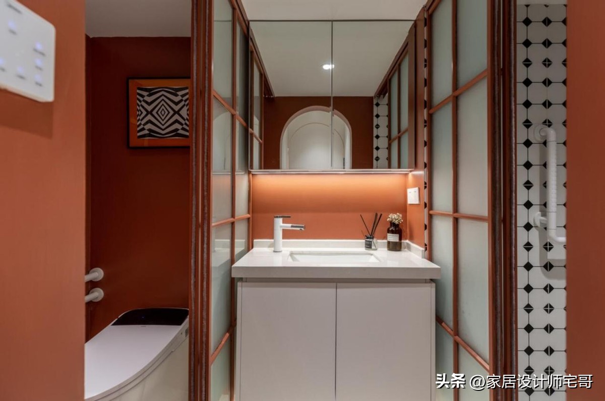 Phòng tắm được chia thành 3 khu riêng: bồn cầu, khu rửa mặt và khu tắm, giúp nhiều người có thể sử dụng cùng lúc, giảm áp lực giờ cao điểm buổi sáng.