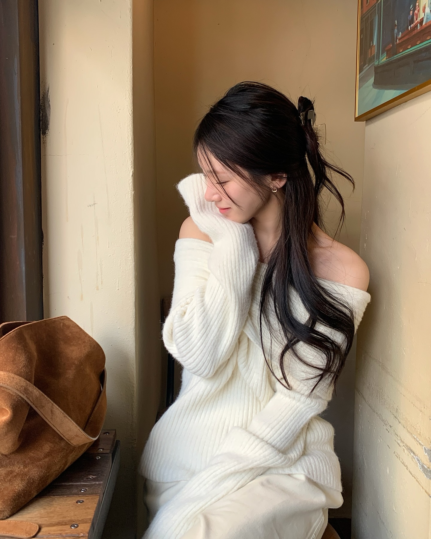 Tóc buộc nửa là lựa chọn hoàn hảo cho những ai yêu thích vẻ nữ tính, nhẹ nhàng nhưng vẫn muốn giữ sự tự nhiên. Kiểu tóc này đặc biệt phù hợp khi bạn mặc áo len dáng rộng, cổ tròn hoặc cổ tim, giúp phần cổ và vai trông thanh thoát hơn mà không quá phô trương.