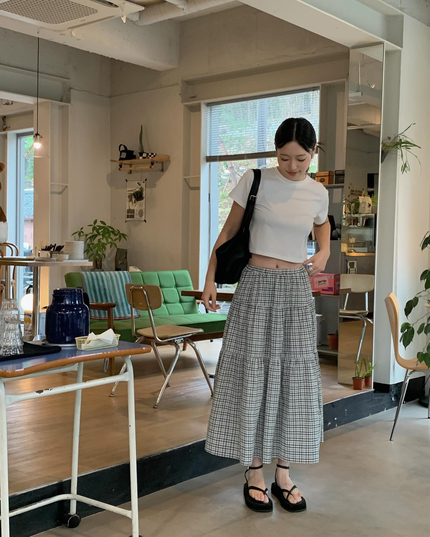 Đây là cách phối đồ đơn giản nhất nhưng lại cực kỳ hiệu quả, đặc biệt với những ai yêu thích sự thoải mái. Áo thun mang đến cảm giác năng động, trẻ trung, khi kết hợp với chân váy sẽ tạo nên sự cân bằng giữa nữ tính và khỏe khoắn.