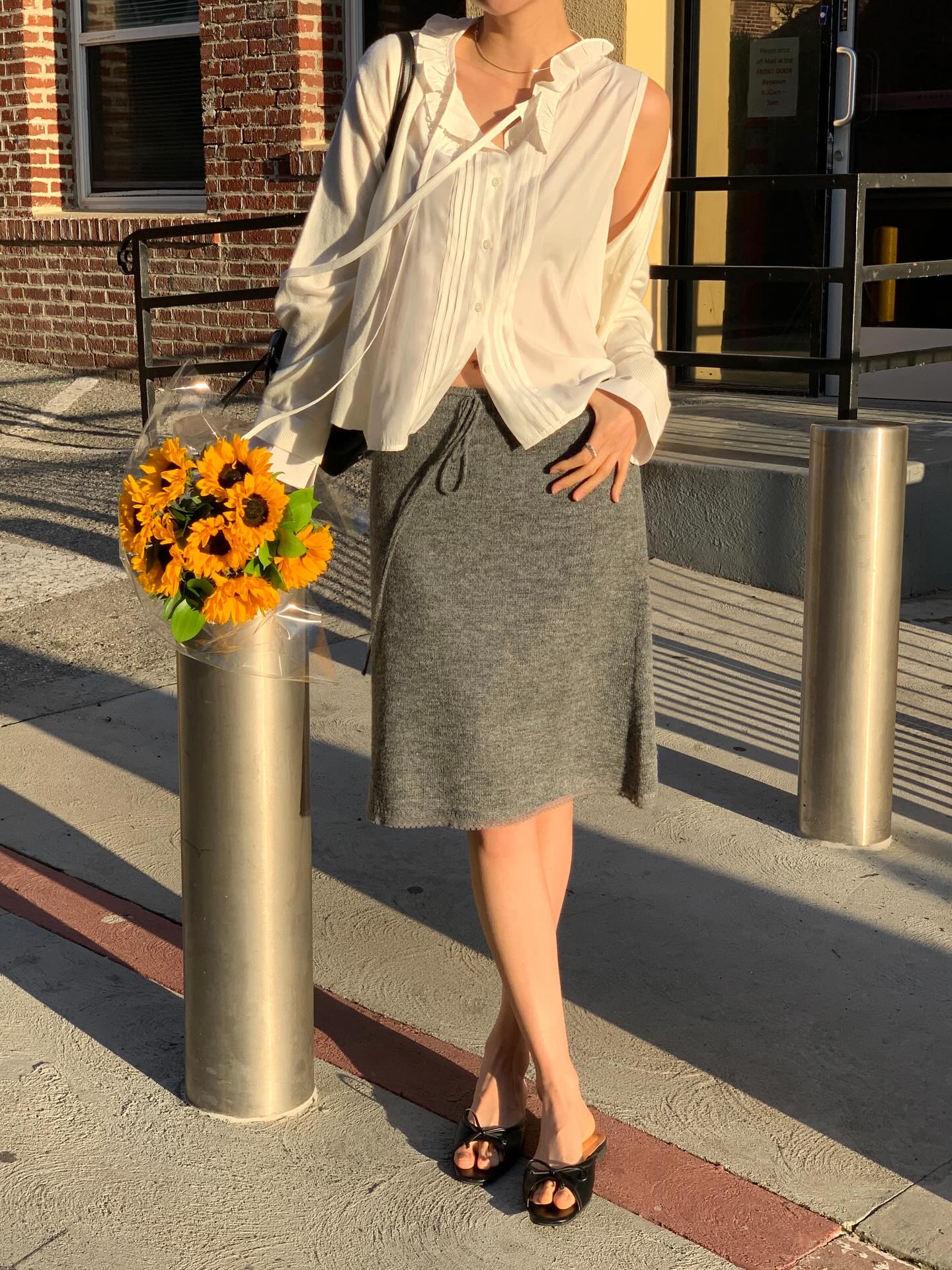 Áo dệt kim và chân váy ngắn là sự kết hợp hoàn hảo cho những ngày thời tiết dịu nhẹ. Những chiếc áo dệt kim mỏng, ôm nhẹ cơ thể sẽ giúp tổng thể trở nên mềm mại và nữ tính hơn. Bạn có thể chọn chân váy chữ A hoặc chân váy xếp ly để tạo hiệu ứng tôn dáng, đặc biệt là giúp đôi chân trông dài hơn.