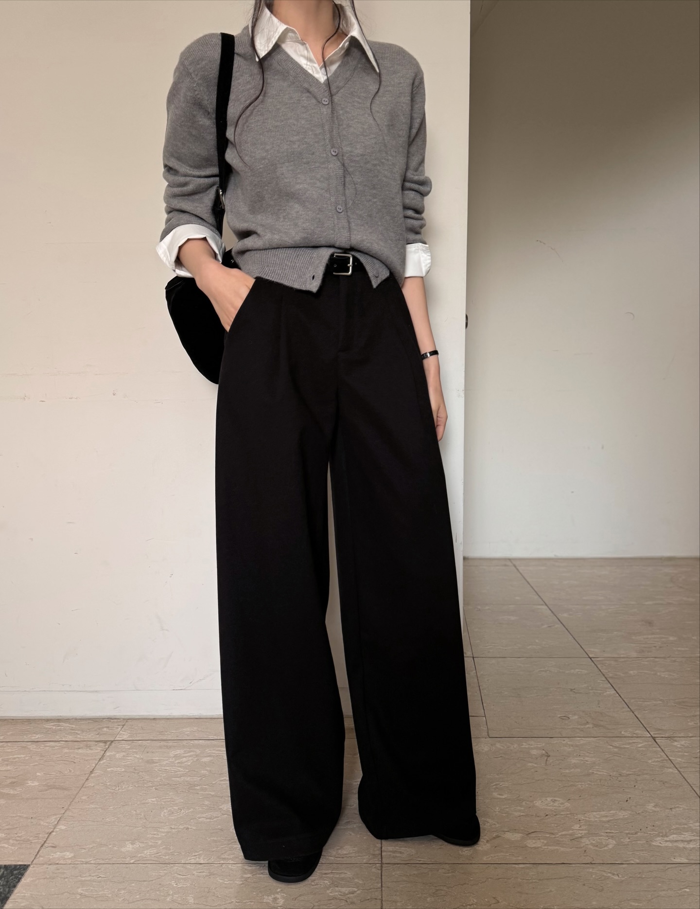 Đường ly giữa chính là điểm đắt giá để tạo đôi chân thon dài khi mặc quần ống rộng. Thiết kế này tạo cảm giác đôi chân thẳng và gọn hơn, đặc biệt phù hợp với những ai lo quần ống rộng sẽ khiến mình trông thấp hơn hoặc bị nuốt dáng. Thêm vào đó, quần có ly giữa luôn mang vẻ chỉn chu, sang trọng, rất hợp cho môi trường công sở mùa đông.
