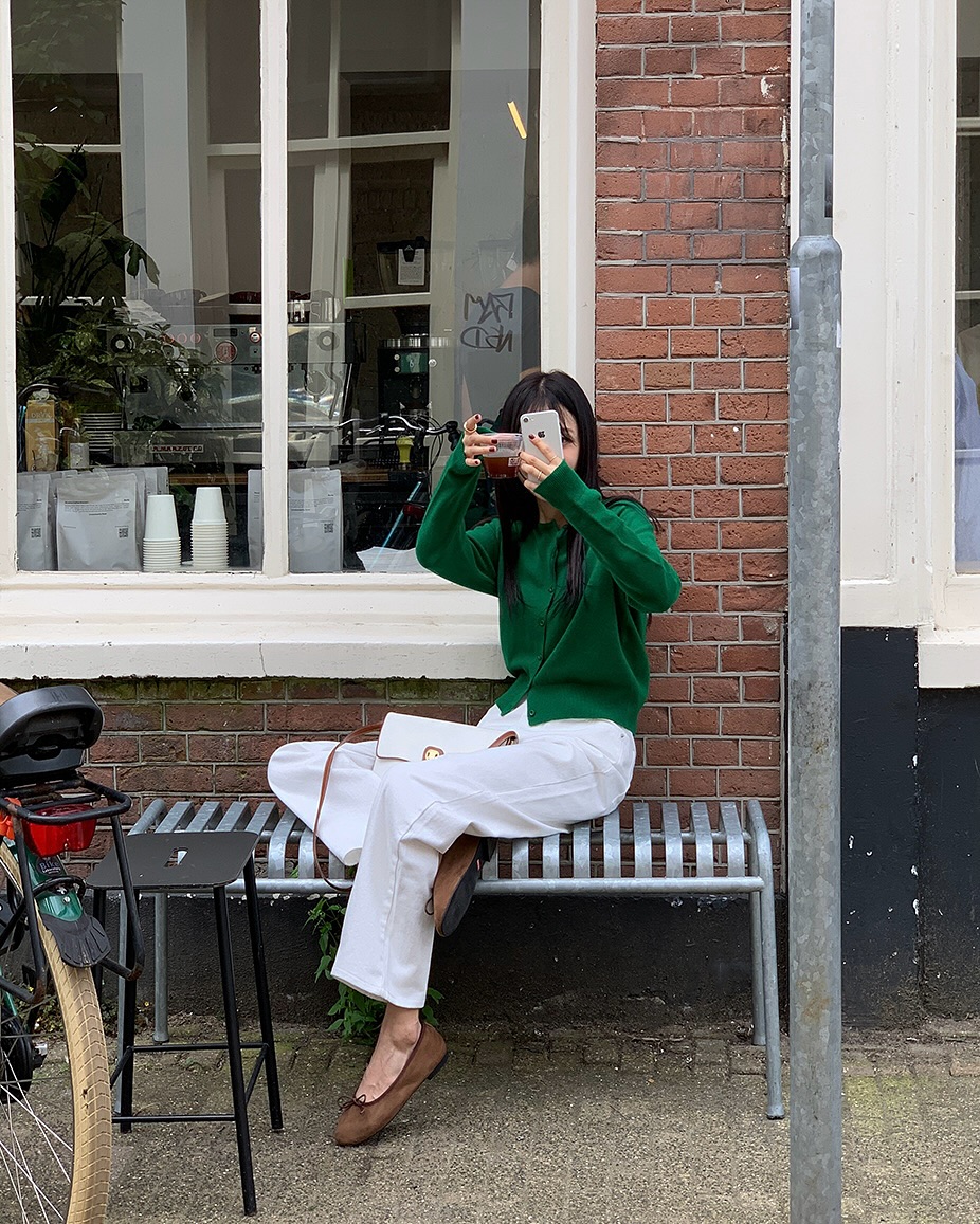 Quần jeans gần như là món đồ không thể thiếu trong mọi mùa, và khi kết hợp với áo mỏng dài tay, bạn sẽ có một công thức đơn giản nhưng luôn hiệu quả. Trong tiết trời mùa đông không lạnh, jeans xanh nhạt hoặc xanh trung bình là lựa chọn hợp lý, tạo cảm giác tươi tắn, trẻ trung hơn so với jeans tối màu.