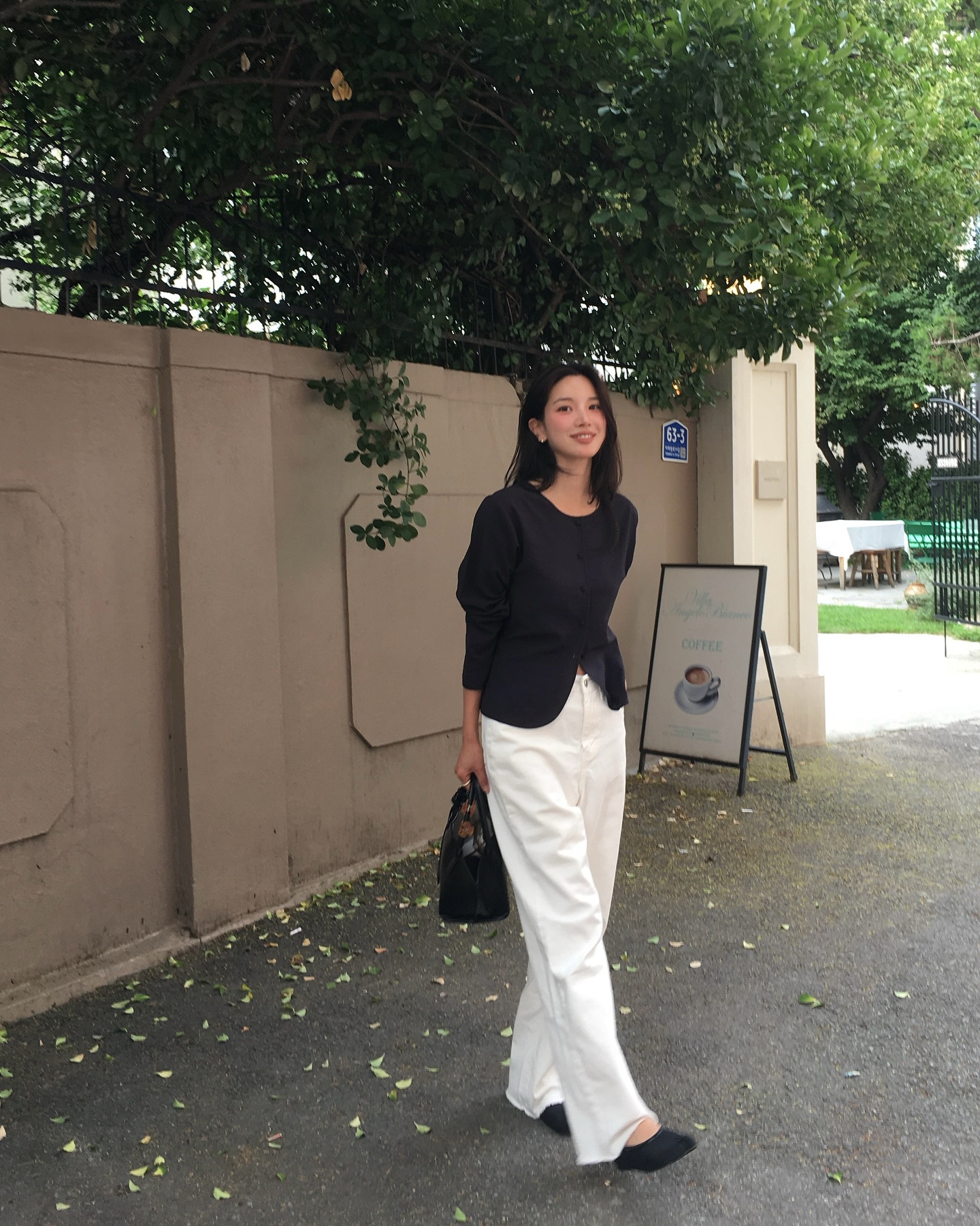 Trong những ngày có nắng, công thức này mang đến cảm giác thoải mái, thoáng đãng mà vẫn giữ được sự chỉn chu cần thiết. Chỉ cần thêm một chiếc thắt lưng mảnh hoặc túi xách tối giản, bạn đã có một outfit hoàn chỉnh.