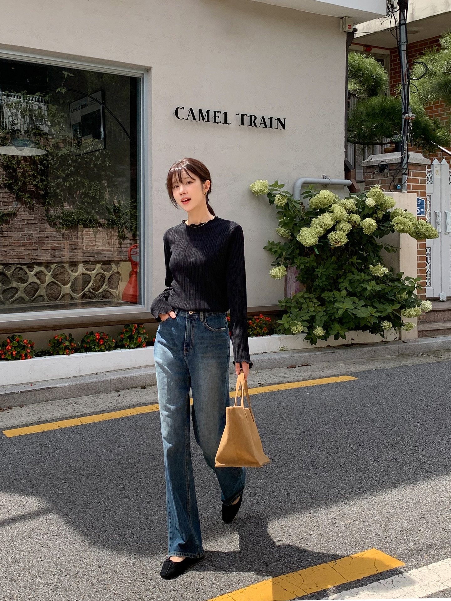 Áo mỏng dài tay dáng ôm nhẹ khi phối cùng quần jeans cạp cao sẽ giúp cân đối tỷ lệ cơ thể, mang đến vẻ ngoài gọn gàng nhưng vẫn thoải mái. Bạn có thể chọn áo trơn màu, áo kẻ mảnh hoặc áo có chi tiết nhún nhẹ ở cổ tay để tạo điểm nhấn. Với những ngày nắng ấm, chỉ cần xắn nhẹ tay áo hoặc chọn chất liệu thoáng khí là đủ để cảm thấy dễ chịu suốt cả ngày.