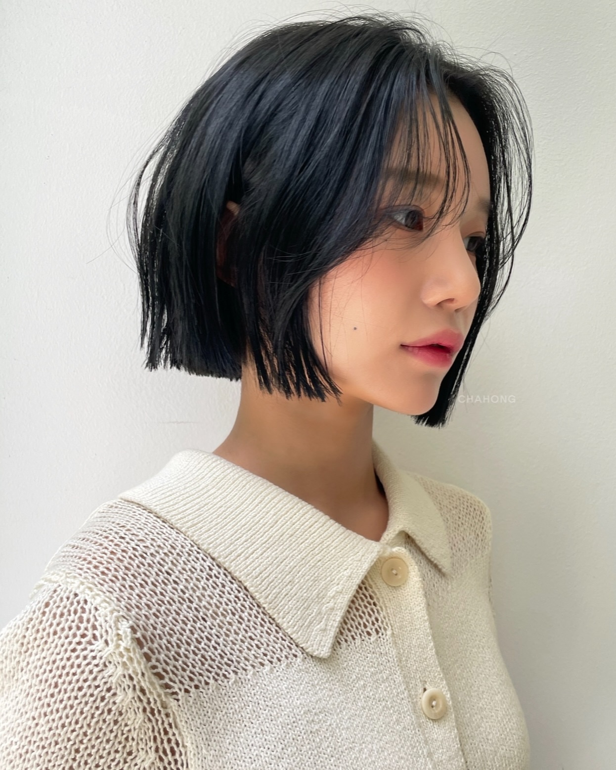 Tóc bob luôn nằm trong danh sách những kiểu tóc kinh điển, không bao giờ lỗi mốt. Khi kết hợp với màu đen nguyên bản, tóc bob mang đến cảm giác sang trọng, tối giản và cực kỳ "high fashion". Kiểu tóc này thường có độ dài ngang cằm hoặc ngang hàm, cắt gọn gàng, giúp làm nổi bật đường viền khuôn mặt.