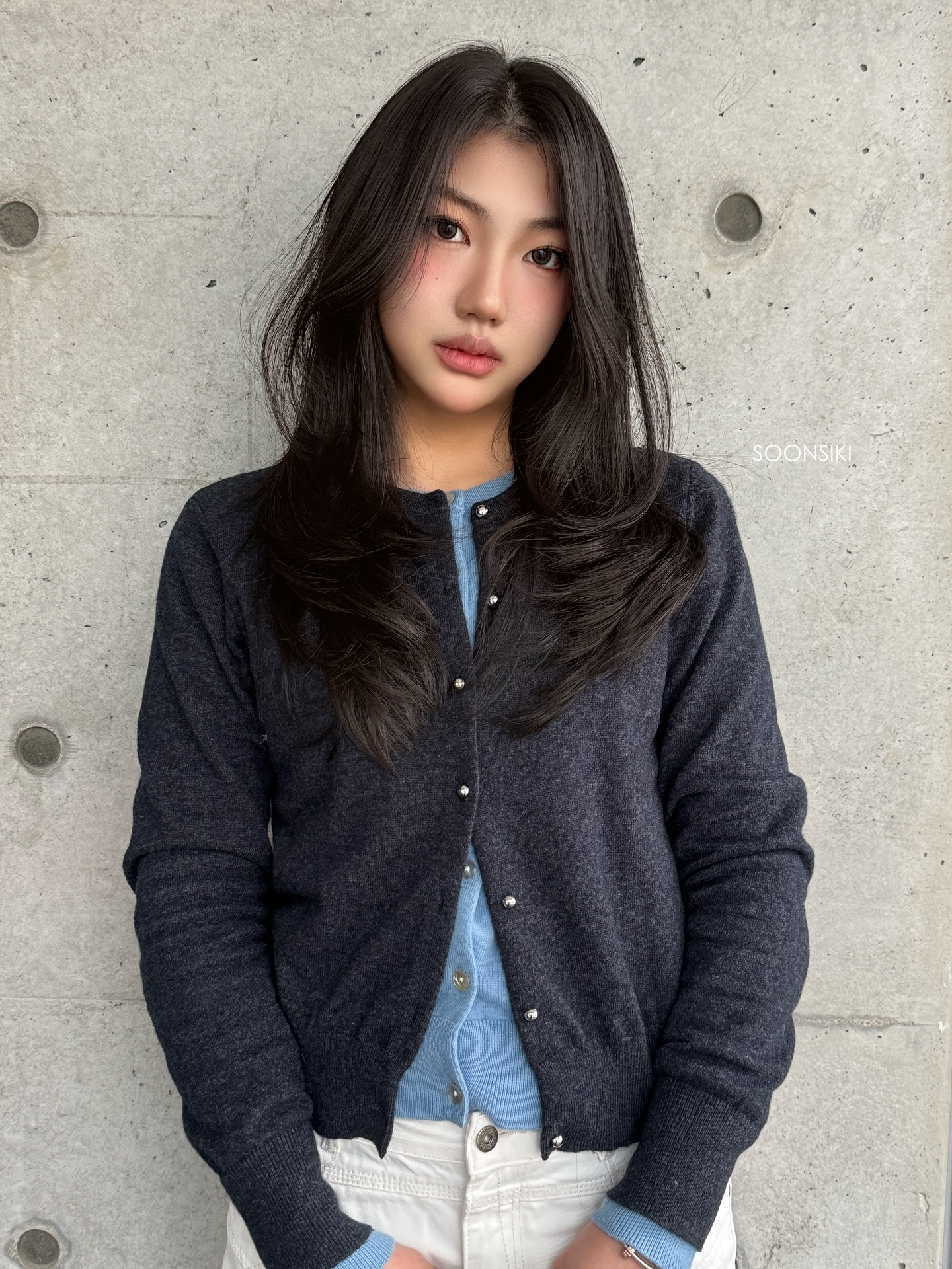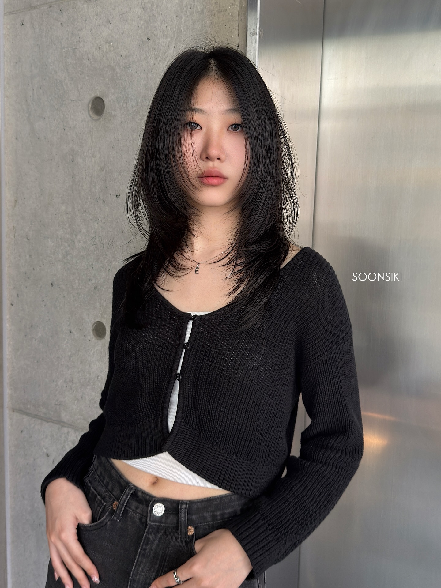 Tóc lửng layer là kiểu tóc có độ dài ngang ngực hoặc qua vai một chút, được tỉa thành nhiều lớp so le để tạo độ phồng và chuyển động tự nhiên. Khi giữ nguyên màu đen, kiểu tóc này mang đến cảm giác dịu dàng, nữ tính nhưng không hề đơn điệu. Các lớp layer giúp mái tóc đen trông nhẹ nhàng hơn, tránh cảm giác nặng nề thường thấy ở tóc dài một màu.