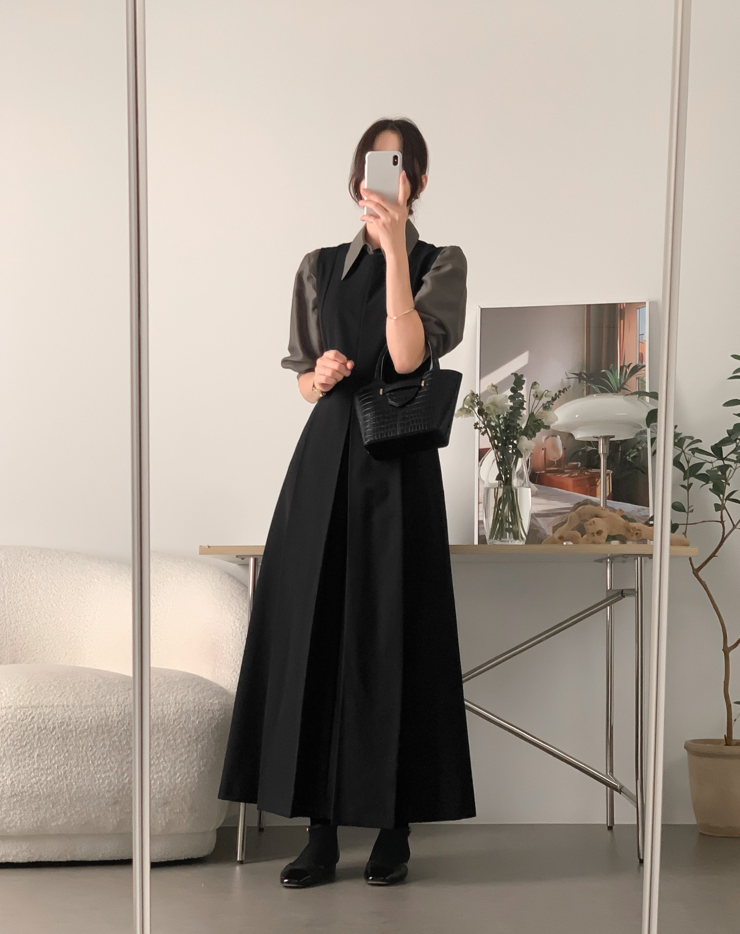 Khi diện váy liền, bạn chỉ cần kết hợp thêm giày cao gót đơn giản và túi xách tối màu là đã có một set đồ công sở hoàn chỉnh. Công thức này đặc biệt phù hợp với những ai yêu thích sự gọn gàng, nữ tính nhưng vẫn muốn giữ tinh thần tối giản, hiện đại trong phong cách hàng ngày.
