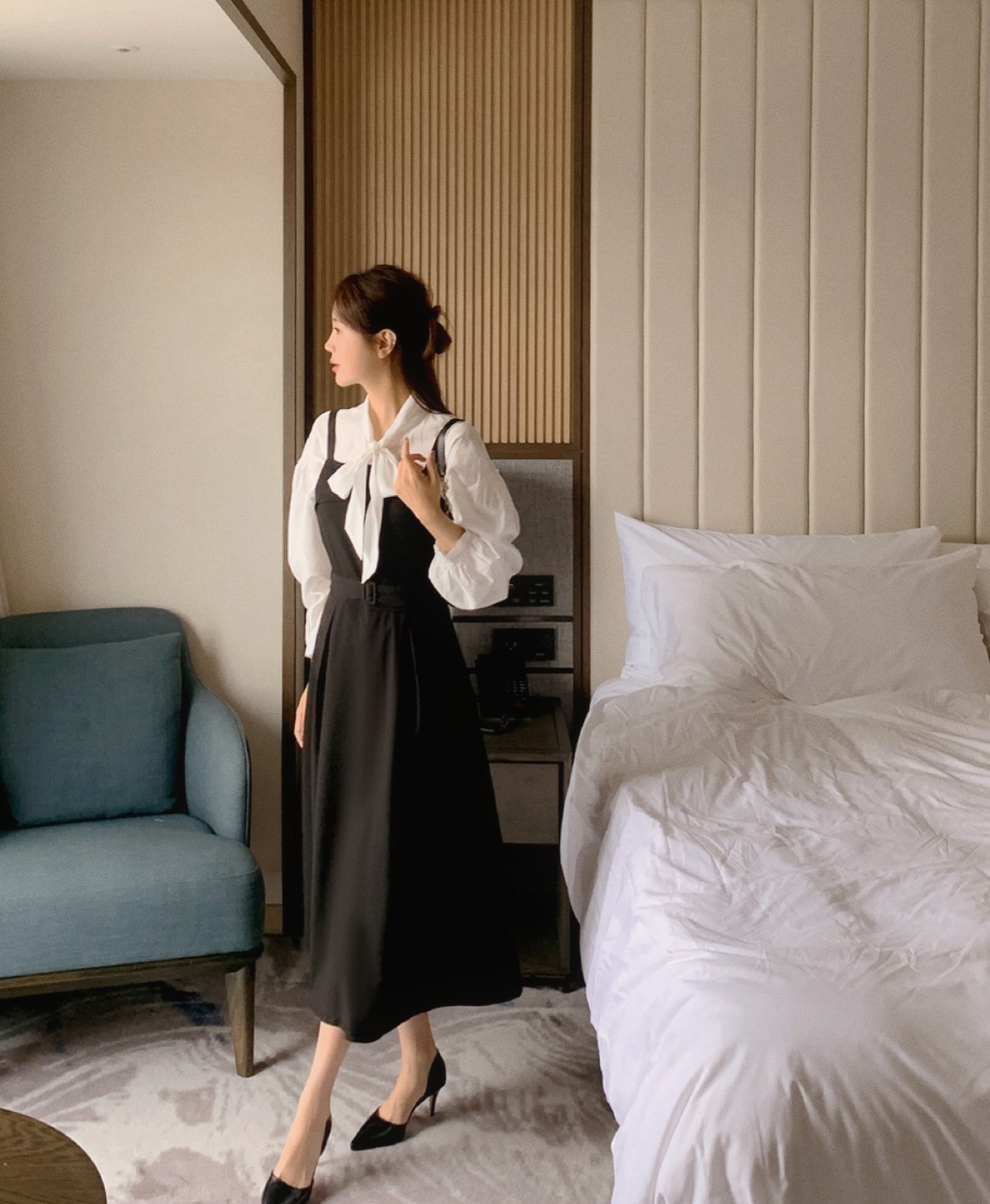 Váy gile là cái tên không thể thiếu khi nhắc đến thời trang trẻ trung mang hơi hướng sang chảnh. Thiết kế đặc trưng với dáng váy không tay, thường mặc layer cùng áo sơ mi, áo thun hoặc áo cổ lọ giúp tổng thể trang phục trông năng động và hiện đại hơn hẳn. Chính khả năng phối đồ linh hoạt này đã khiến váy gile trở thành lựa chọn yêu thích của nhiều cô nàng muốn "trẻ hóa" phong cách.