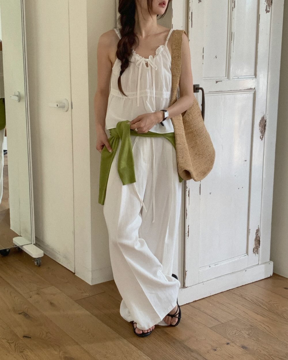 Không chỉ phù hợp với phong cách năng động, áo tank top còn có thể trở nên quyến rũ khi kết hợp cùng quần ống rộng, chân váy dài hoặc quần short cạp cao. Sự đơn giản của áo giúp bạn dễ dàng phối đồ mà không mất quá nhiều thời gian suy nghĩ.