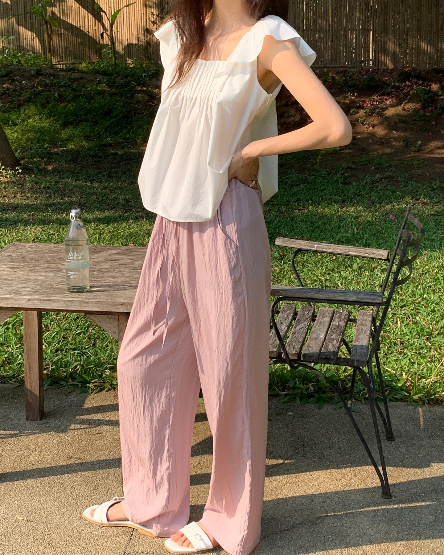 Áo bèo nhún mang đến vẻ mềm mại, bay bổng và rất phù hợp với không khí mùa hè. Khi kết hợp với quần ống rộng, đặc biệt là các kiểu quần suông cạp cao, tổng thể sẽ trở nên cân đối hơn nhờ phần áo có độ phồng nhẹ tạo điểm nhấn ở thân trên.