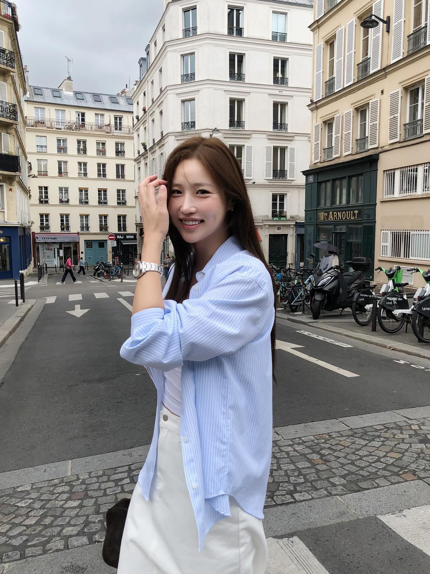 Điểm mạnh của sơ mi pastel là dễ phối đồ mà không gây cảm giác nhàm chán. Bạn có thể kết hợp với quần trắng, quần jeans sáng màu hoặc chân váy midi để tạo nên vẻ ngoài thanh lịch mà vẫn trẻ trung. Ngoài ra, những chiếc áo pastel oversized cũng là lựa chọn lý tưởng nếu bạn thích phong cách thoải mái, hiện đại. Chỉ cần xắn nhẹ tay áo hoặc mở vài cúc cổ, tổng thể đã trở nên phóng khoáng và cuốn hút hơn.