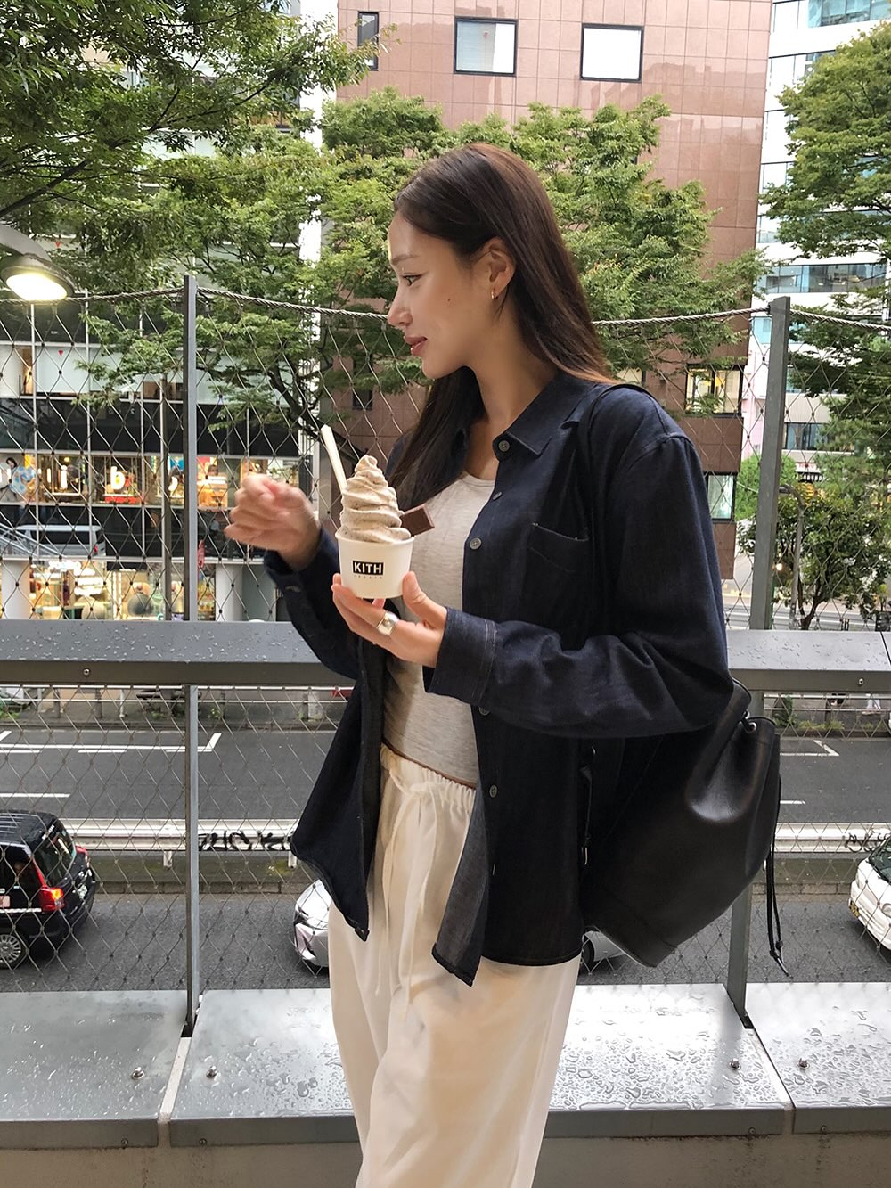 Ngoài cách mặc đơn lẻ, sơ mi denim còn có thể được sử dụng như áo khoác ngoài. Chỉ cần khoác nhẹ lên áo thun hoặc váy hai dây, bạn đã có ngay một outfit vừa năng động vừa trẻ trung. Đây là kiểu áo đặc biệt phù hợp cho những buổi dạo phố hoặc du lịch, khi bạn muốn vừa thoải mái vừa phong cách.