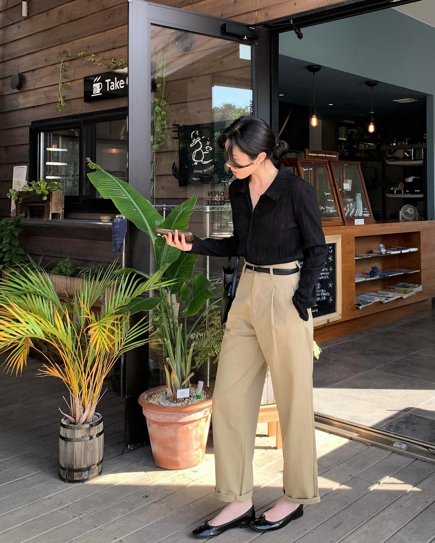 Để giữ ấm cho cơ thể mà vẫn không mất đi sự thanh thoát, bạn có thể kết hợp quần âu ống suông với áo sơ mi dài tay, áo len mỏng hoặc thậm chí là một chiếc áo khoác dáng dài. Giày cao gót hoặc boots sẽ là lựa chọn tuyệt vời cho bộ trang phục này.