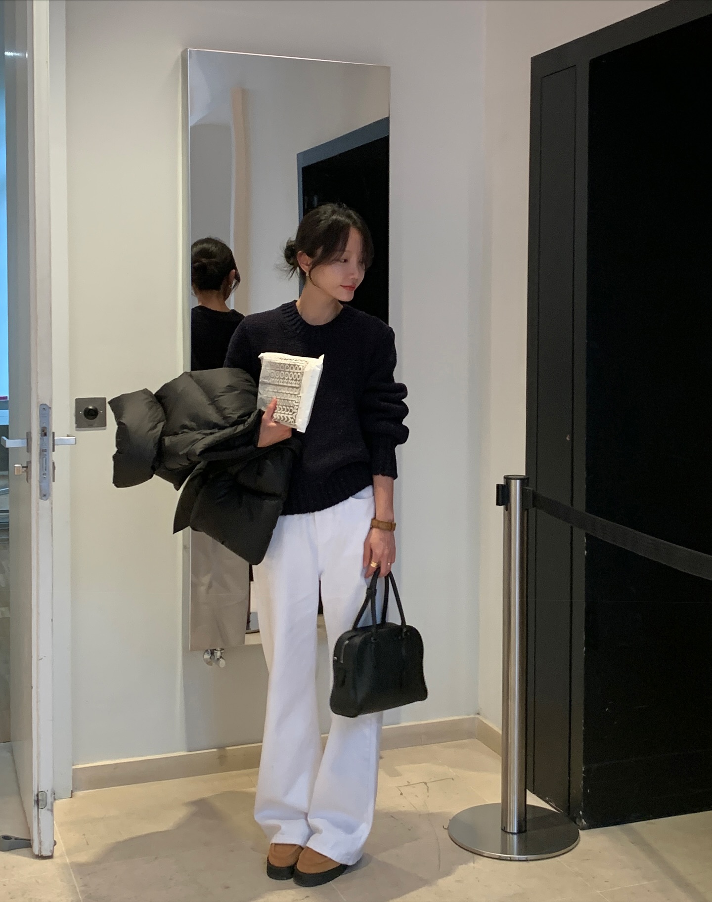 Mặc dù màu trắng thường gắn liền với những ngày hè oi ả, nhưng quần denim trắng trong mùa đông lại mang đến một cảm giác tươi mới và nổi bật giữa những gam màu trầm của mùa lạnh. Quần denim trắng không chỉ dễ phối đồ mà còn là một lựa chọn thú vị cho những ai muốn thêm phần năng động, cá tính trong môi trường công sở.