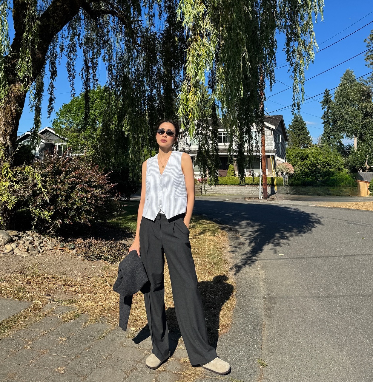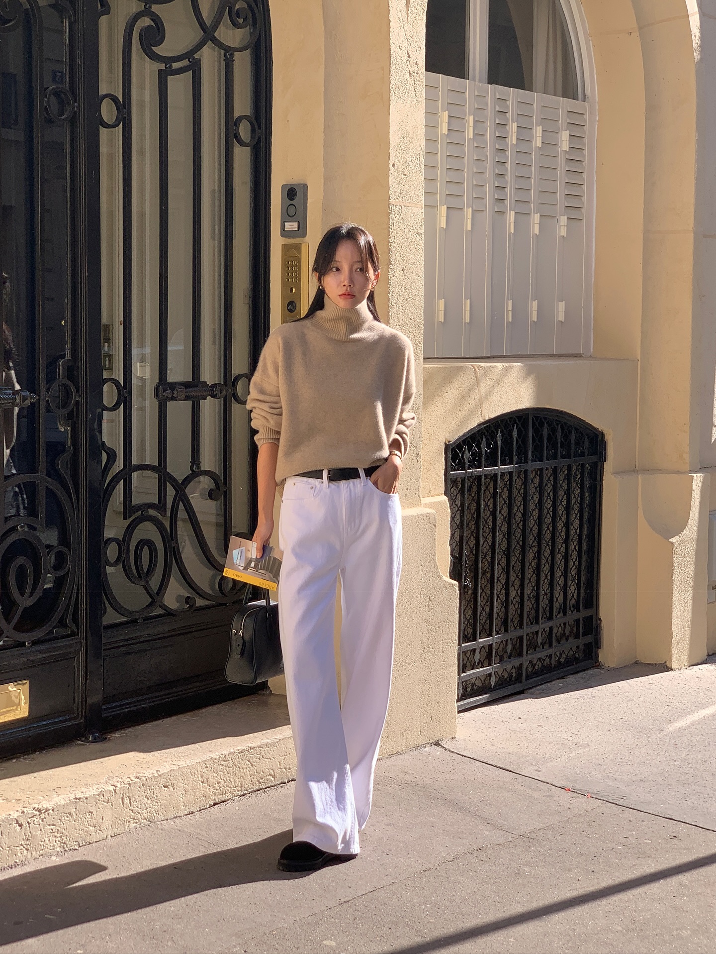 Quần trắng rất dễ phối đồ, đi cùng áo sơ mi pastel cho phong cách nhẹ nhàng, phối với áo blazer màu be để tạo vẻ ngoài chuẩn công sở, hoặc kết hợp áo thun và sandal thấp cho những buổi dạo phố cuối tuần. Sự tối giản của quần trắng cho phép bạn linh hoạt với phụ kiện, từ thắt lưng da bản nhỏ đến túi xách tông nâu hoặc đen.
