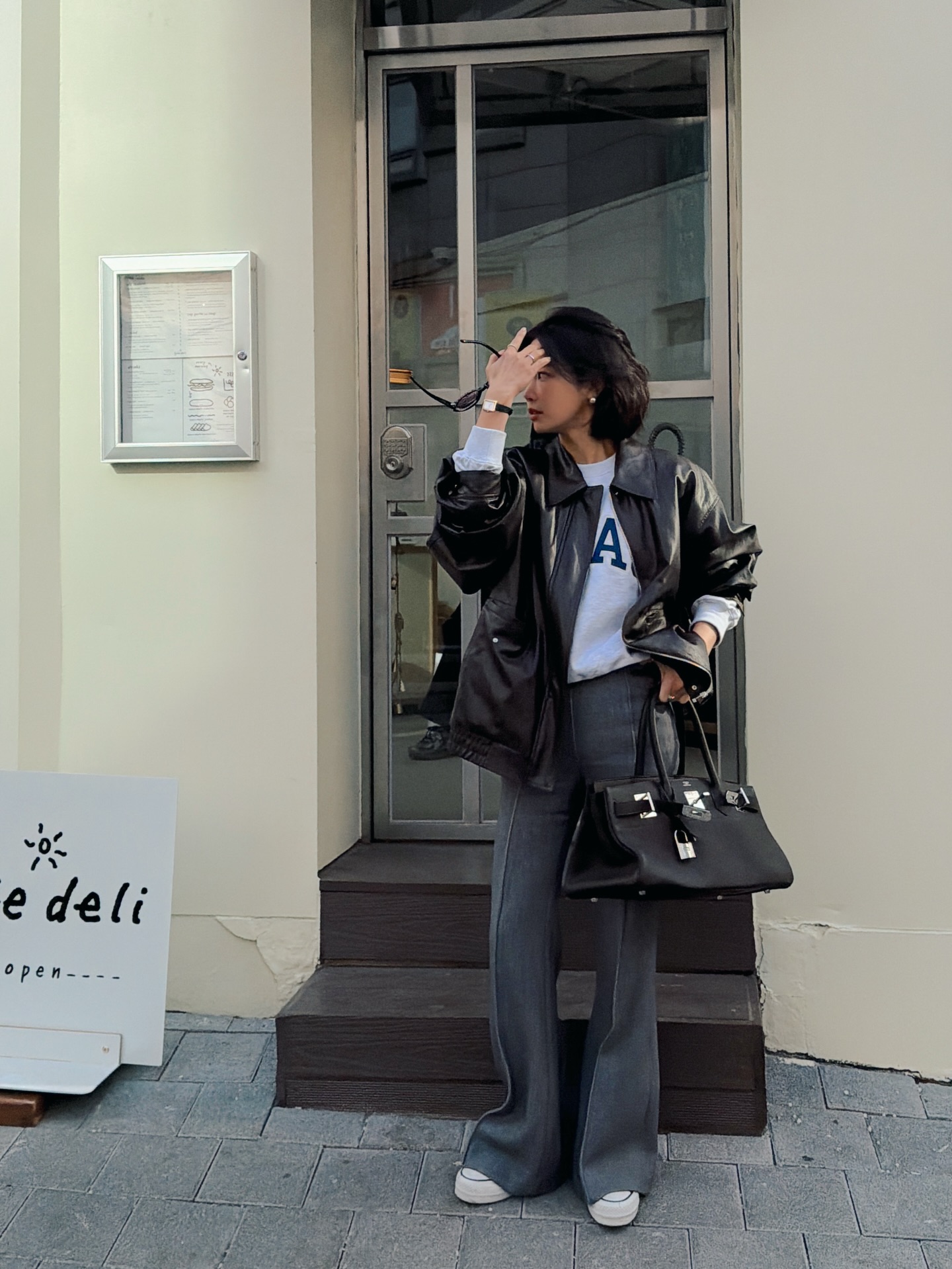 Phối denim đen cùng áo blouse sáng màu, áo len cổ lọ hay áo khoác dáng dài đều tạo nên tổng thể hài hòa. Khi cần vẻ ngoài thanh lịch hơn, chỉ cần thêm một đôi giày cao gót mũi nhọn và túi xách da cứng cáp là đủ. Denim đen chính là minh chứng rằng phụ nữ trên 40 vẫn có thể trẻ trung, miễn là biết tiết chế và chọn đúng kiểu dáng.