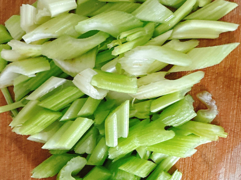Chuẩn bị nguyên liệu: Một ít mộc nhĩ khô, hai cọng cần tây Mỹ tươi, 3 tép tỏi, một nhúm muối, nước tương, một ít dầu ăn và một chút tinh chất cốt gà.