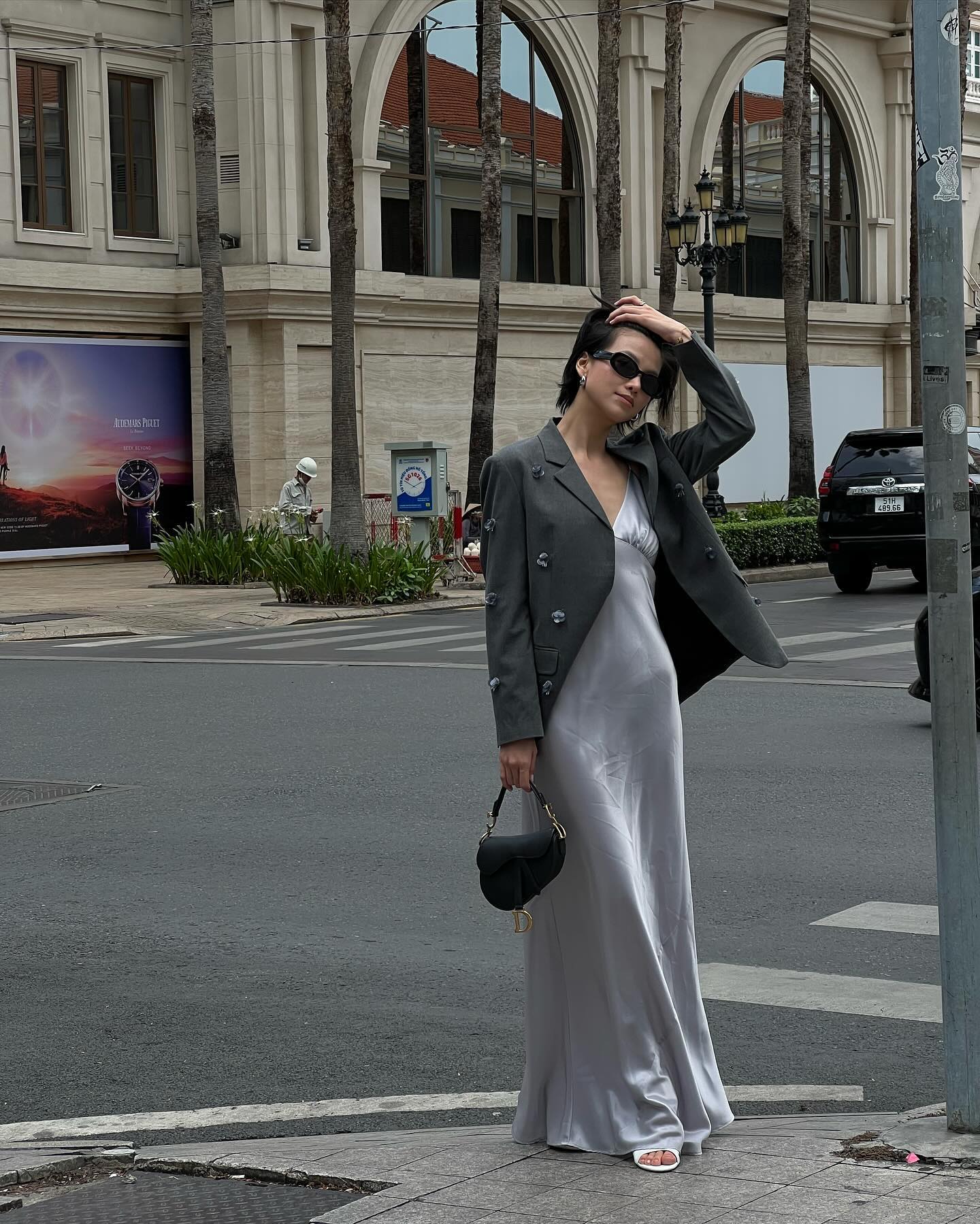 Bên cạnh đó, blazer cũng là item được cô khai thác triệt để. Không gò bó trong những bộ suit truyền thống, Yến Trang thường phối blazer cùng chân váy dài, tạo nên sự giao thoa thú vị giữa nét mạnh mẽ và mềm mại. Chân váy dáng dài giúp tổng thể thêm phần thanh thoát, đồng thời mang lại vẻ ngoài rất "fashionista". Chính sự tự tin và tinh thần thoải mái trong cách ăn mặc đã giúp Yến Trang luôn giữ được phong độ trẻ trung, bất chấp con số tuổi tác.