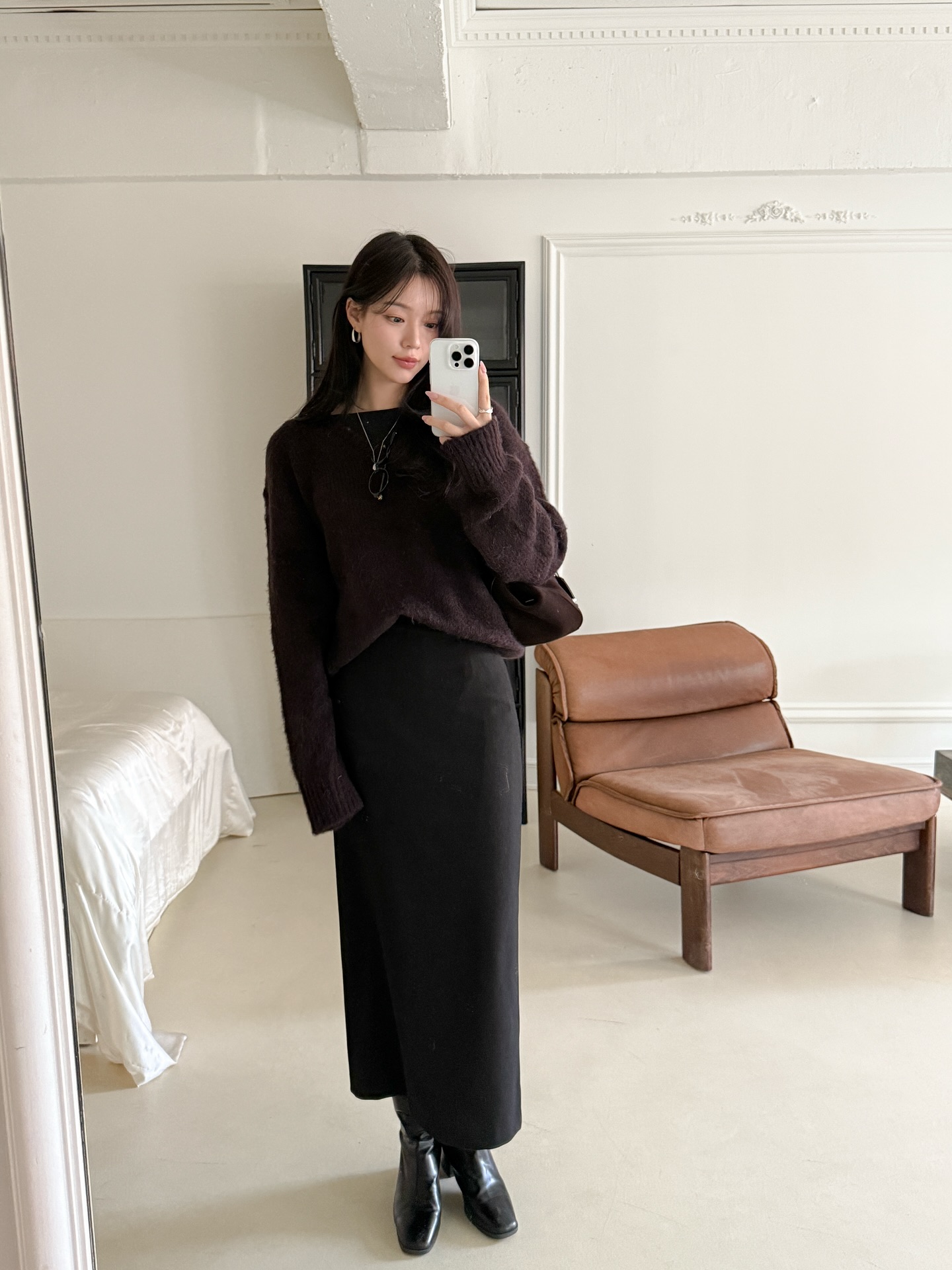 Mix chân váy dài và áo lửng