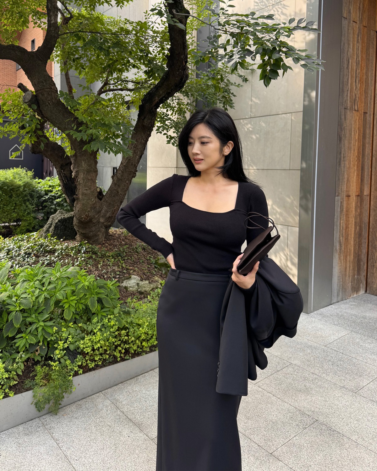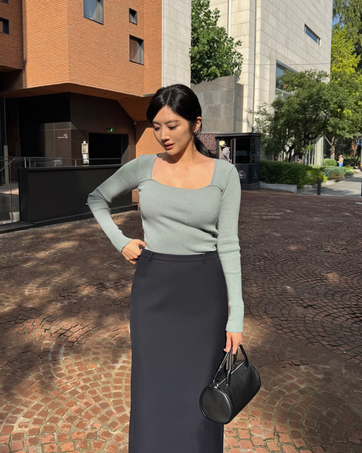 Ai yêu phong cách tối giản chắc chắn sẽ mê sự kết hợp này. Chân váy suông dáng dài, đặc biệt là các mẫu chất liệu dạ, len dệt hoặc lụa dày, khi đi cùng áo len mang lại cảm giác mềm mại nhưng cực kỳ sang. Đây là công thức hoàn hảo cho môi trường công sở hoặc những buổi café cuối tuần nhẹ nhàng.
