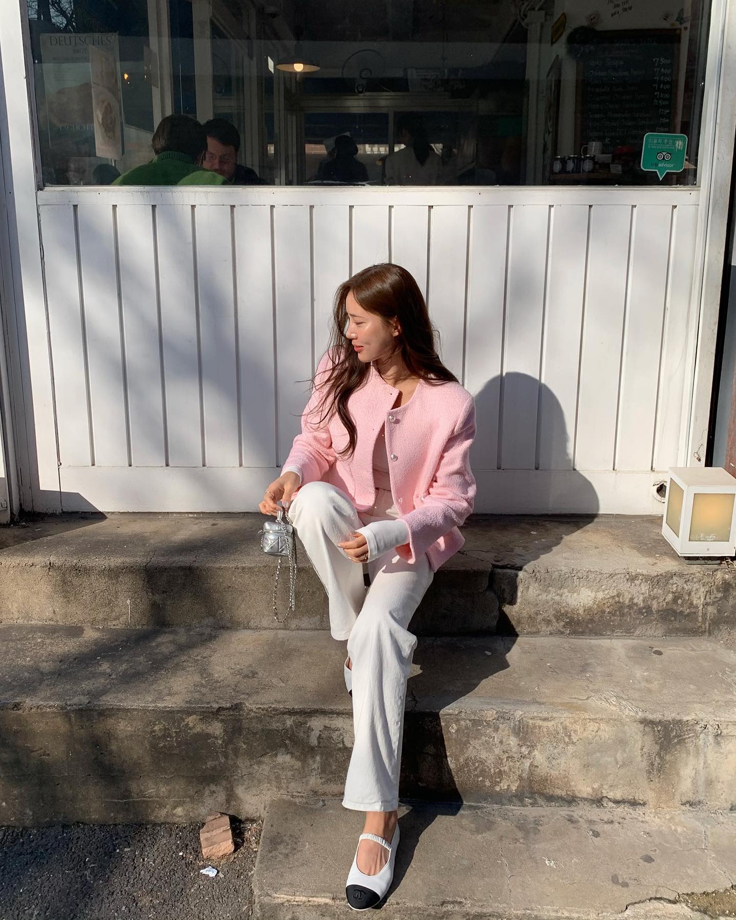 Giày búp bê, Mary Jane hoặc sneaker trắng đều phù hợp với combo này. Đây là kiểu phối đồ lý tưởng cho những buổi tụ họp gia đình, khi bạn muốn mình trông vừa nền nã vừa hiện đại.