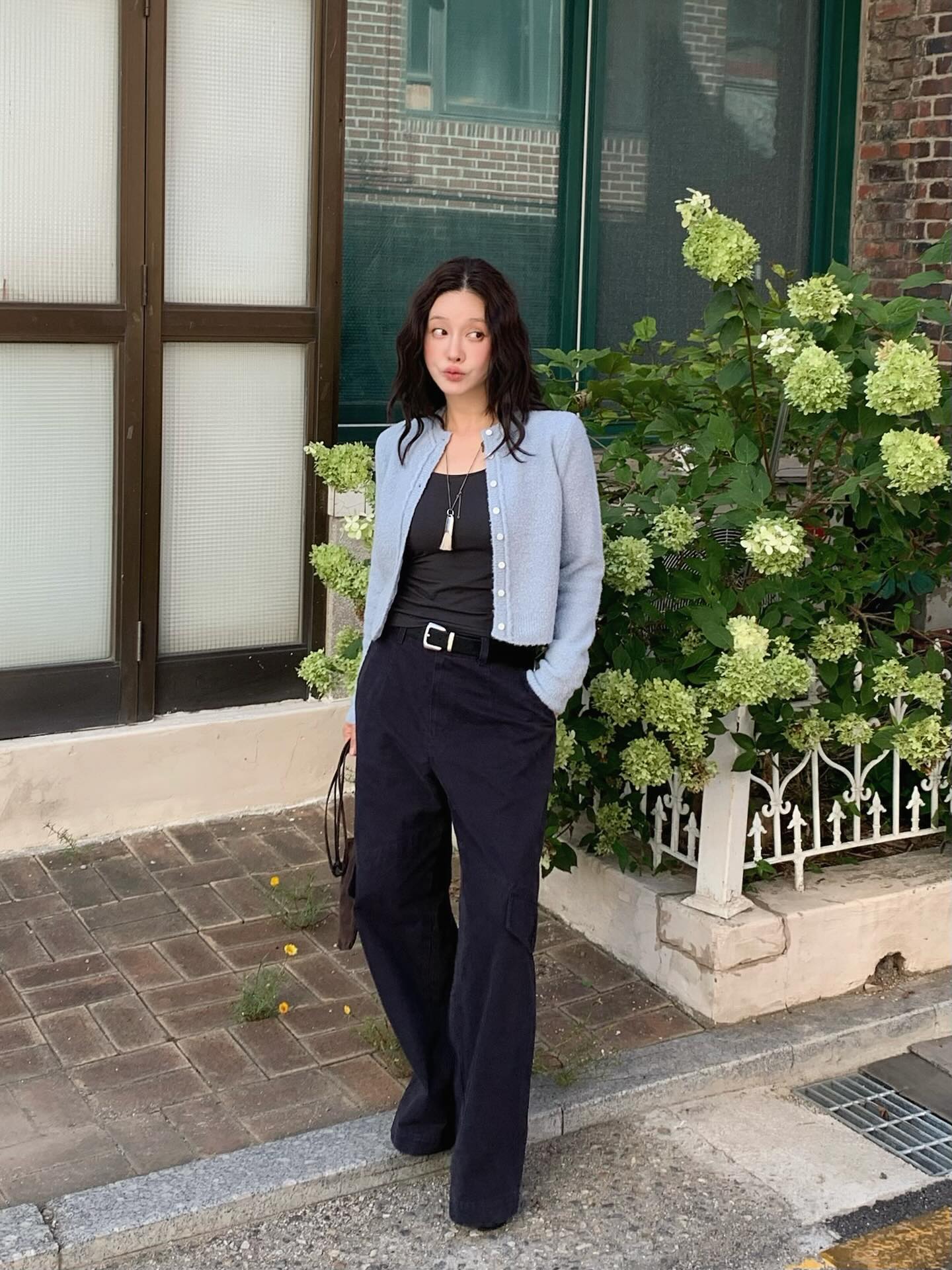 Cardigan luôn mang lại cảm giác ấm áp, gần gũi, rất hợp với không khí đầu xuân. Khi phối cùng quần ống suông, tổng thể trang phục trở nên mềm mại, dễ chịu mà vẫn đủ tinh tế. Bạn có thể chọn cardigan dáng ngắn để tôn chiều cao hoặc cardigan dáng dài nếu thích phong cách nhẹ nhàng, nữ tính hơn.