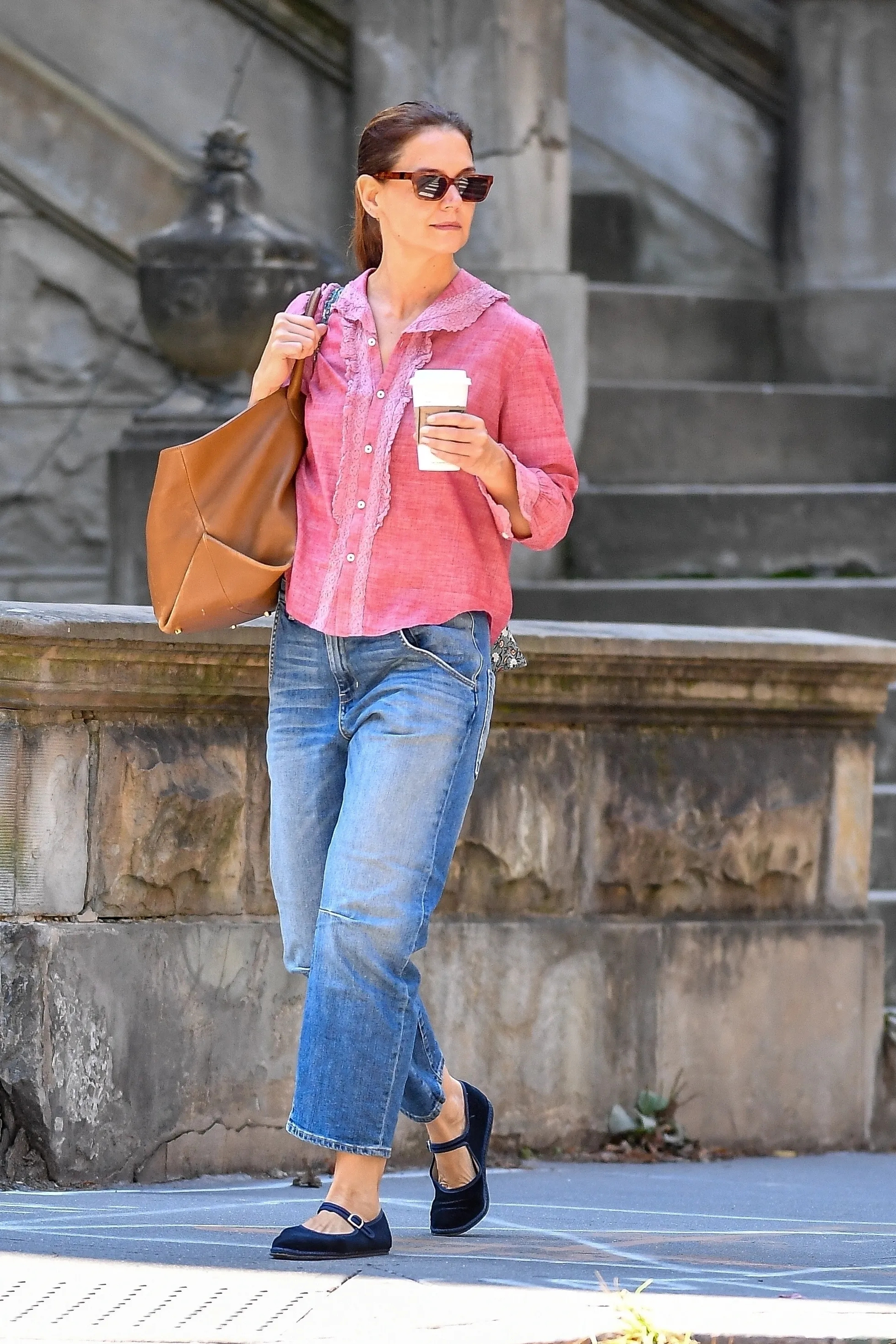 Khi phối cùng jeans, hãy chọn dáng suông hoặc hơi ôm nhẹ thay vì skinny bó sát. Jeans cạp cao cũng là lựa chọn thông minh vì giúp che nhược điểm vòng hai và tạo cảm giác chân dài hơn. Hoàn thiện set đồ bằng một đôi sandal thấp hoặc giày bệt là đủ thanh lịch cho những buổi dạo phố, gặp gỡ bạn bè.