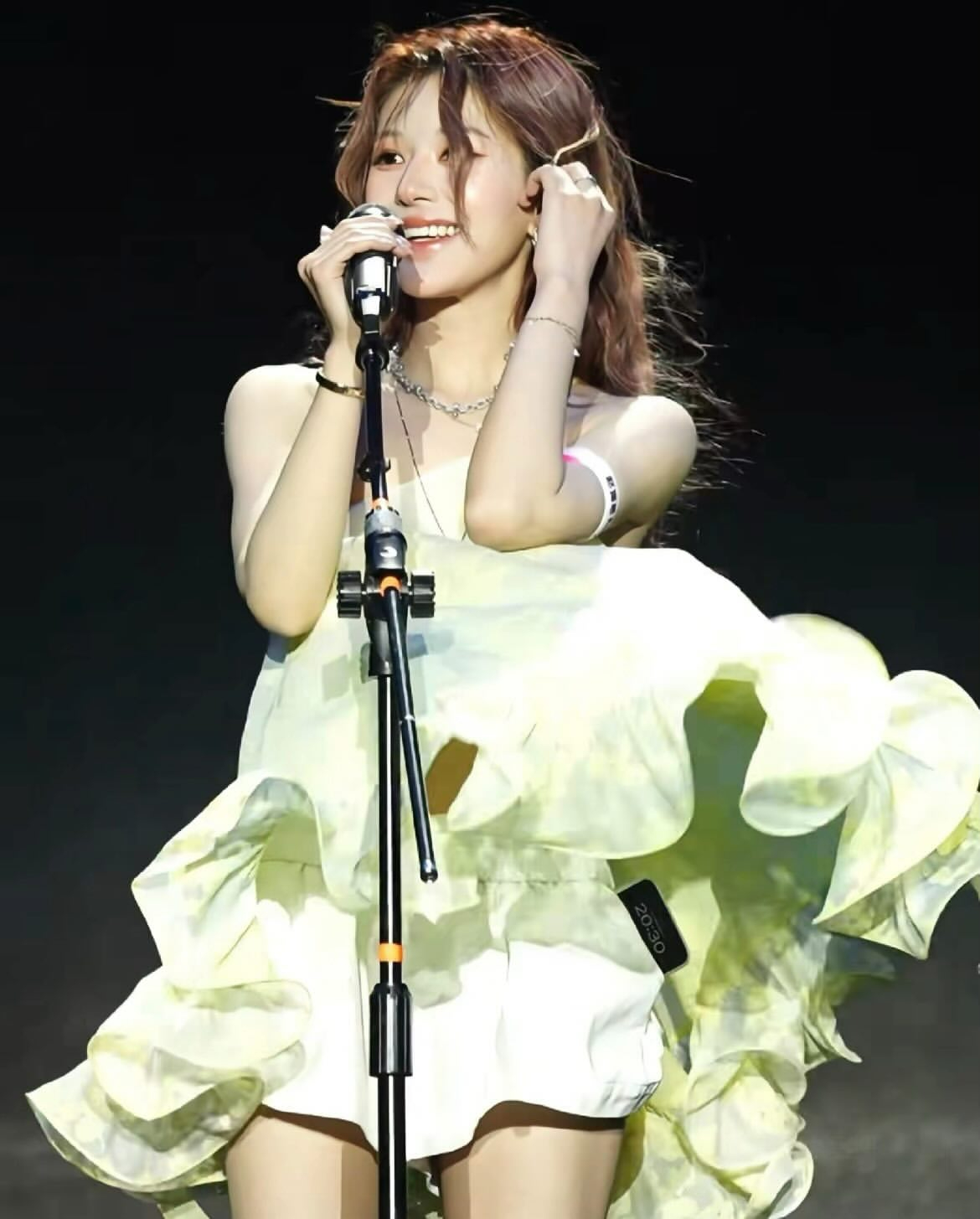 Xuất hiện trong mẫu đầm babydoll màu vàng nhạt với phom dáng rộng, bồng bềnh, Triệu Lộ Tư thành công mang đến diện mạo ngọt ngào, tươi tắn. Tuy nhiên, chính thiết kế bay bổng này lại dễ bị ảnh hưởng khi gặp gió, tạo nên tình huống tốc váy bất ngờ. Dẫu vậy, khoảnh khắc ấy không hề phản cảm bởi cô đã chuẩn bị kỹ lưỡng với một chiếc quần short dáng bí bên trong. Thay vì chọn kiểu bảo hộ mỏng thông thường, nữ diễn viên ưu tiên thiết kế có độ phồng nhẹ để hài hòa với tổng thể trang phục, vẫn giữ được sự kín đáo mà không làm mất đi vẻ mềm mại vốn có. Lựa chọn này giúp Triệu Lộ Tư tự tin xử lý tình huống, đồng thời giữ trọn hình ảnh chỉn chu và duyên dáng trước công chúng.
