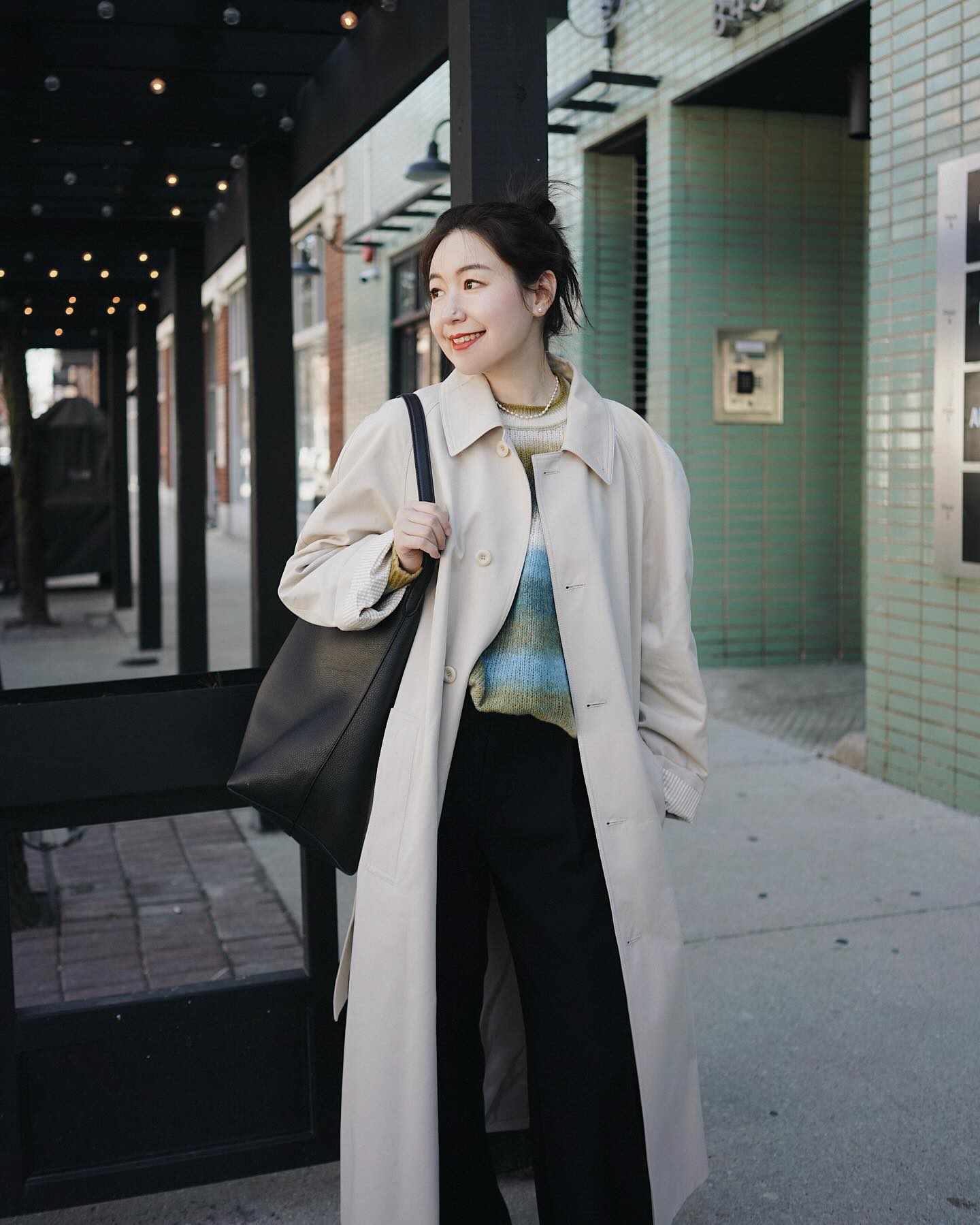 Trench coat là biểu tượng của phong cách cổ điển và thanh lịch, đặc biệt được ưa chuộng vào mùa thu – đông. Khi mặc ngoài áo len, trench coat không chỉ giúp giữ ấm mà còn tạo nên vẻ ngoài thời trang, tinh tế và rất "điện ảnh".